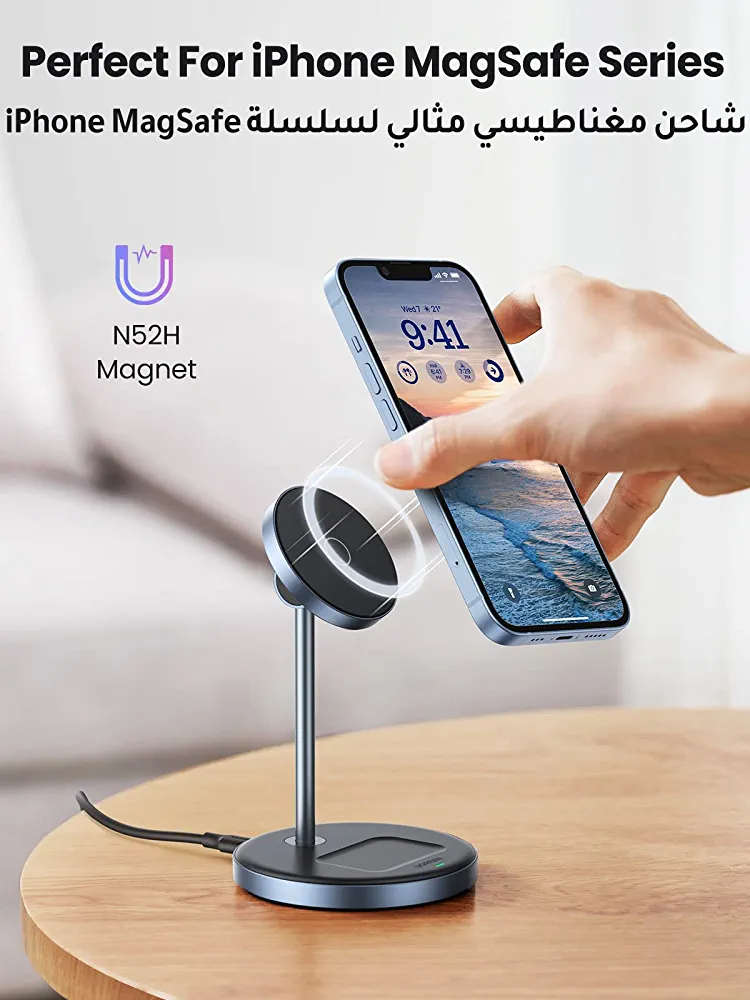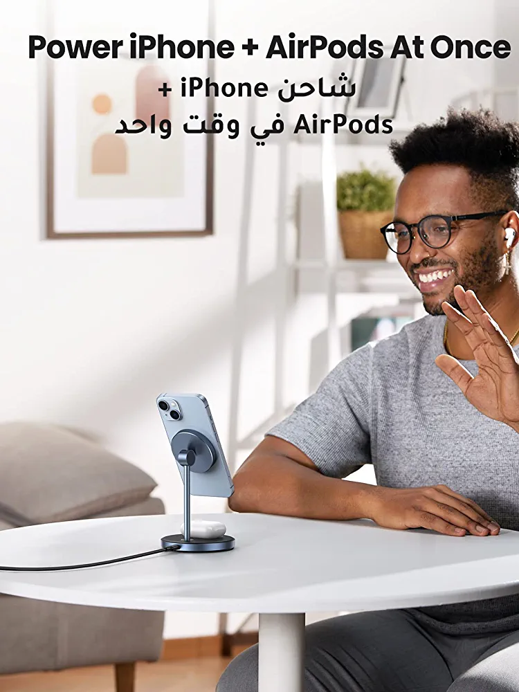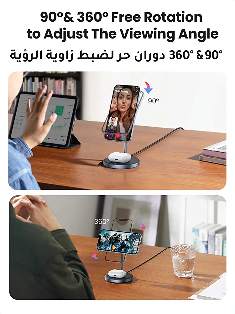 | nameOriginal | UGREEN Wireless Charger 2 in 1 Magsafe iPhone Charger Stand Airpods Wireless Charger Fast Magsafe Charger Station 360° Free Rotation Compatible for iPhone 14/13/12 series, AirPods Pro/3/2 |
