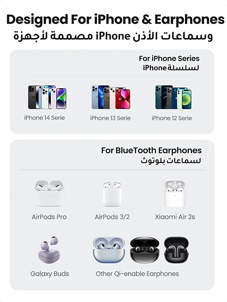 Introducing the UGREEN 2 in 1 Wireless Charger, the perfect solution for charging your iPhone and Airpods wirelessly. This charger allows for easy switching between devices, giving you the freedom to charge whichever device you need at any time. Please note that this charger is only compatible with iPhone 14/13/12 series without a case or with a MagSafe/Magnetic case. Additionally, if you plan to use it for Airpods 2, make sure your Airpods 2 are the wireless version. The wireless charger stand is equipped with built-in over-current/over-voltage/over-heat protection and other functions to ensure the safety of your devices. Not only does this charger serve as a charger, but it also doubles as a holder. Experience a quality life with UGREEN’s U-Home Series. Compare our products by specification, compatibility, special features, material, and color. Choose from our Wireless Charger, Power Strip, iPhone Cable, USB C Cable, Tablet Stand, and R&T Bluetooth Receiver & Transmitter Adapter.