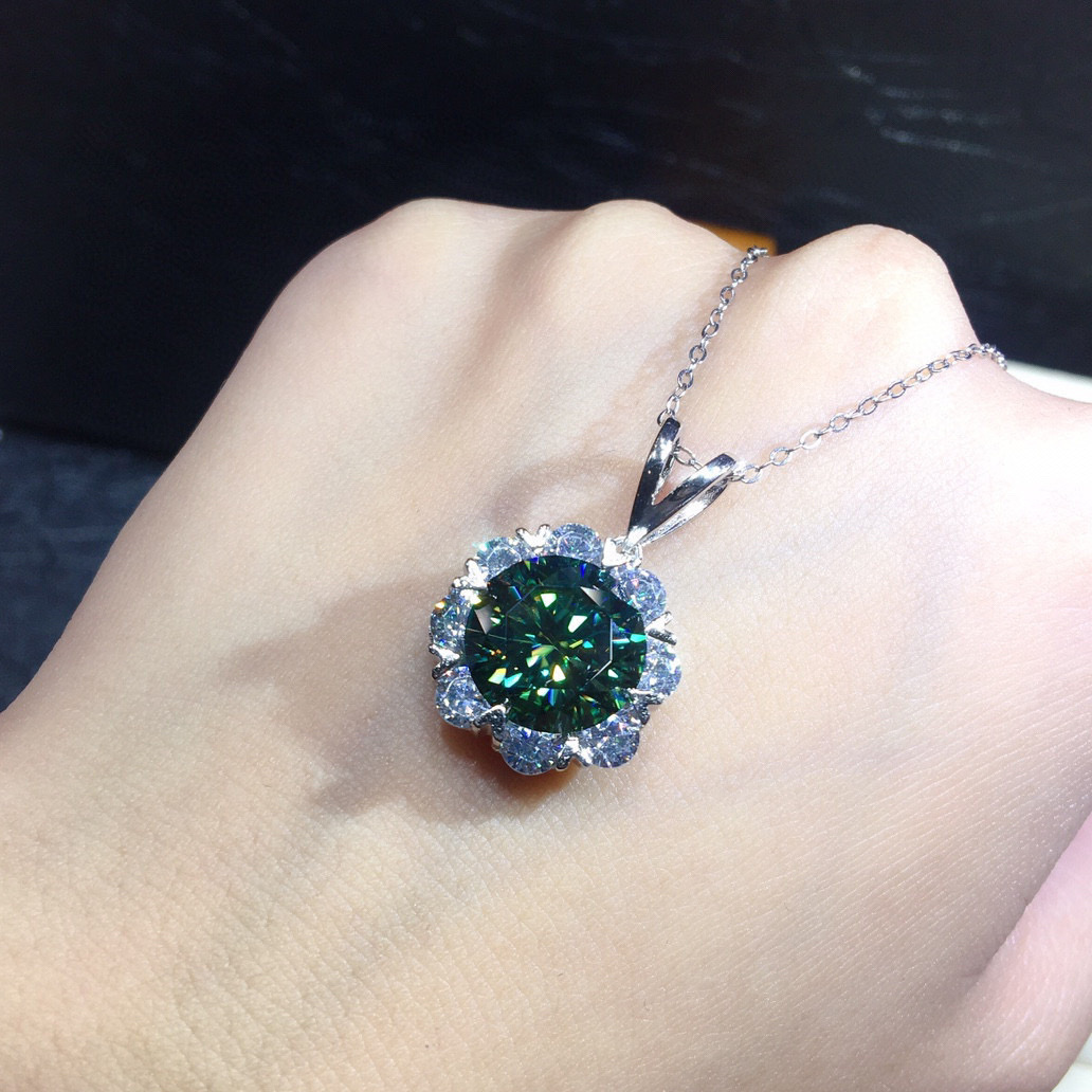 | nameOriginal | 2 karat Eight Heart and Eight Arrows Plated PT950 Simulation Blue and Green Mosan Diamond Full Diamond Pendant Female Temperament Necklace Clavicle Chain |