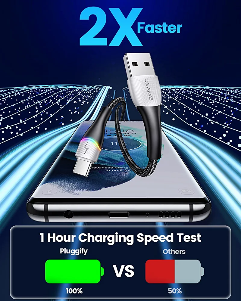 The Pluggify USB C Cable 2 Pack Type C Charger Fast Charging is the perfect solution for all your charging needs. With a length of 6.6FT+6.6FT, this durable nylon braided Android Samsung charger is designed to provide fast charging for your devices. The USB C charger is compatible with a range of devices including Galaxy S10 S9 S8, Note 10 9 LG, PS5 Controller, and Switch. The nylon braided cable ensures that the cable is tangle-free and durable, making it perfect for everyday use. The fast charging feature ensures that your devices are charged quickly and efficiently, saving you time and hassle. With the Pluggify USB C Cable 2 Pack Type C Charger Fast Charging, you can be sure that your devices are always charged and ready to go.