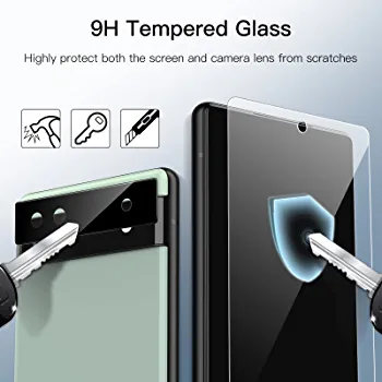 2-Pack JETech Tempered Glass Screen Protector with Camera Lens Protector for Google Pixel 6a 6.1-Inch, Fingerprint Compatible, HD Clear, Easy Installation Tool.