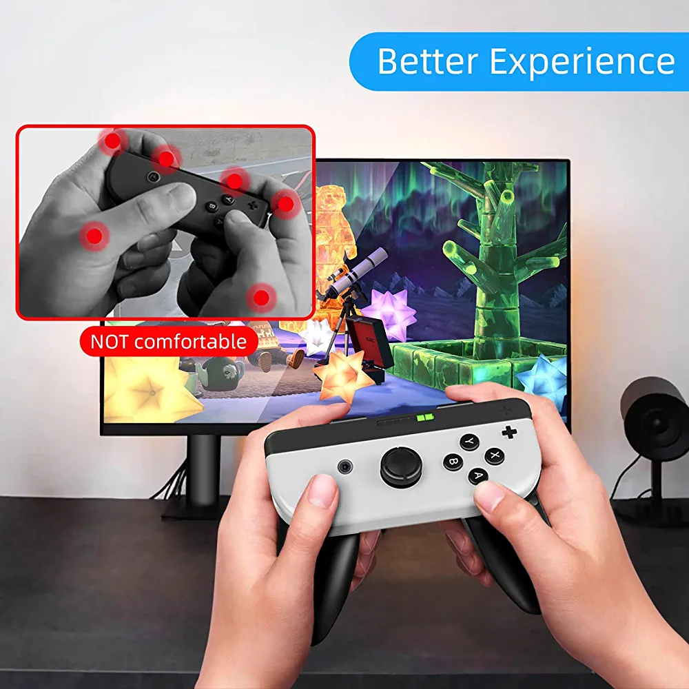 The Joycon Grips are easy to install and remove, making them a convenient accessory for gamers on the go. The grips are compatible with both Nintendo Switch and Switch OLED Joy-Con Controllers, ensuring that you can use them with any of your favorite games. With the Joycon Grips, you can take your gaming experience to the next level and enjoy hours of uninterrupted gameplay.