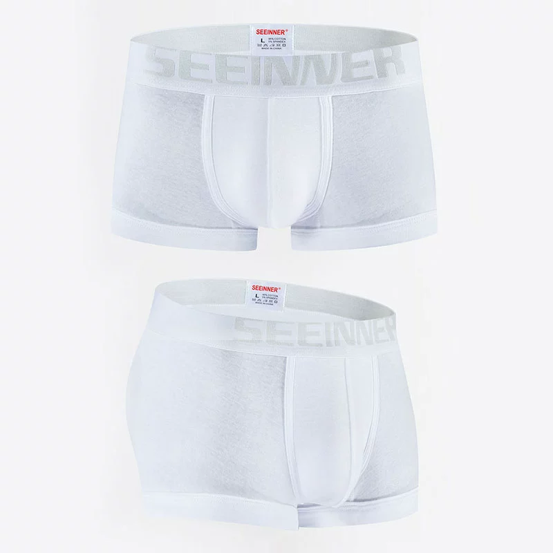 2 pack SEEINNER men's pure cotton low-waist solid color boxer briefs simple men's fashion boxer briefs for men