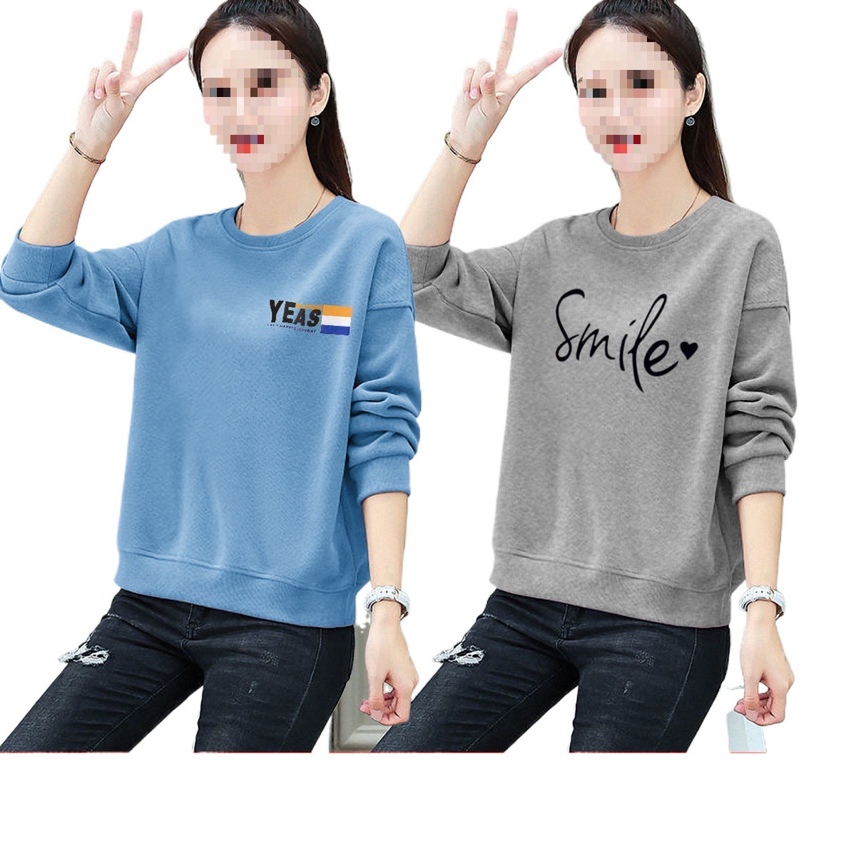 [2 Pack] Spring and Autumn Thin Long Sleeve Ins Top Students Korean Loose All-match New Cotton Sweatshirt Women’s Wear