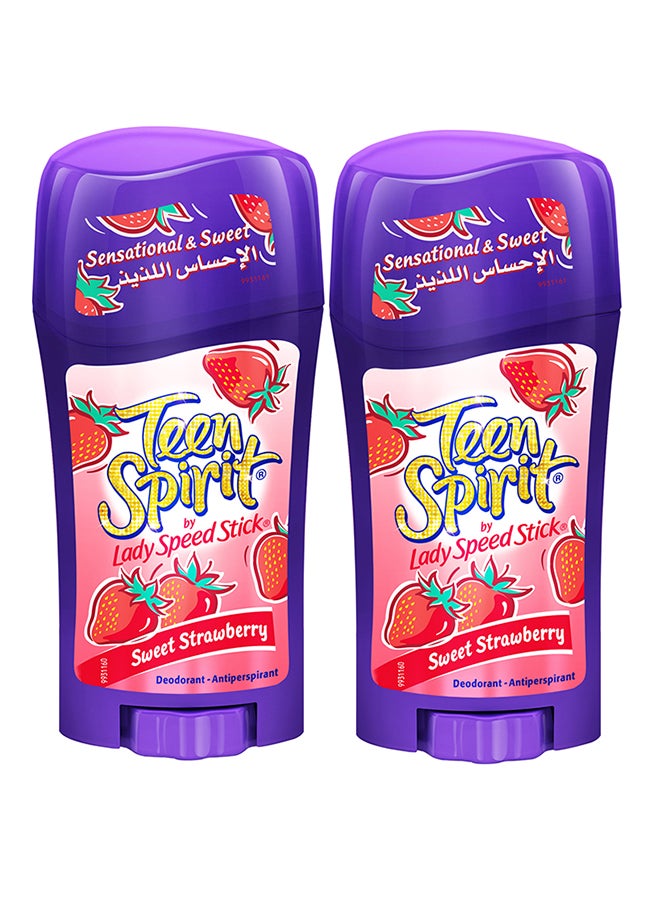 | nameOriginal | Pack of 2 Teen Spirit Sweet Strawberry Antiperspirant Deodorant 65g |
