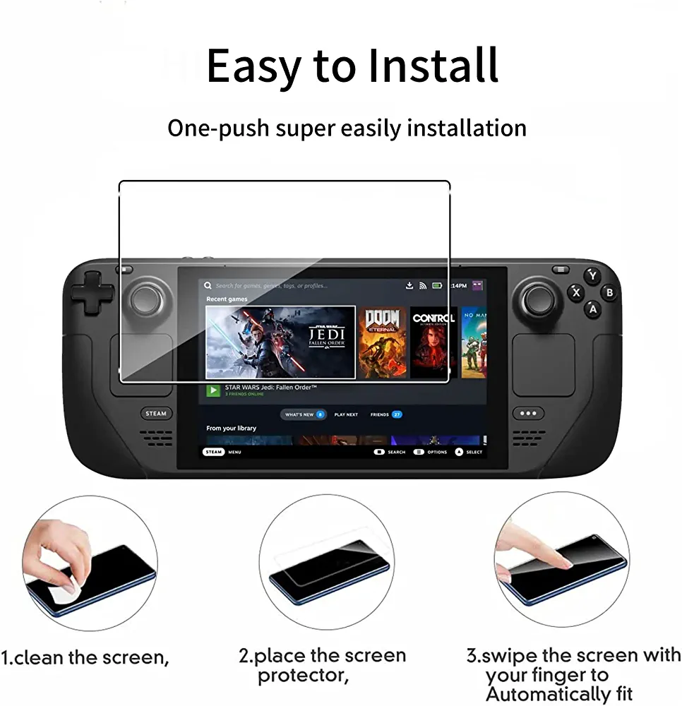 | nameOriginal | BIGTHREE Glass Screen Protector Compatible with Steam Deck Gaming, 2 Pack Tempered Glass Film Scratch-Resistant Anti-Shatter Screen Protector, 9H Hardness HD Clear Easy Installation |