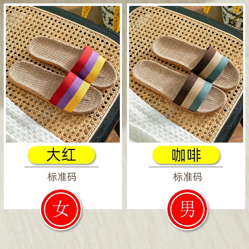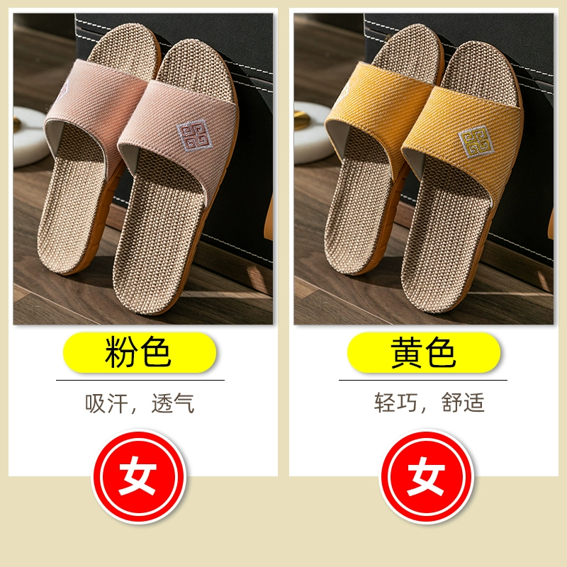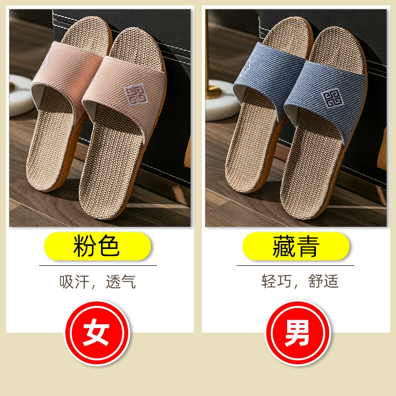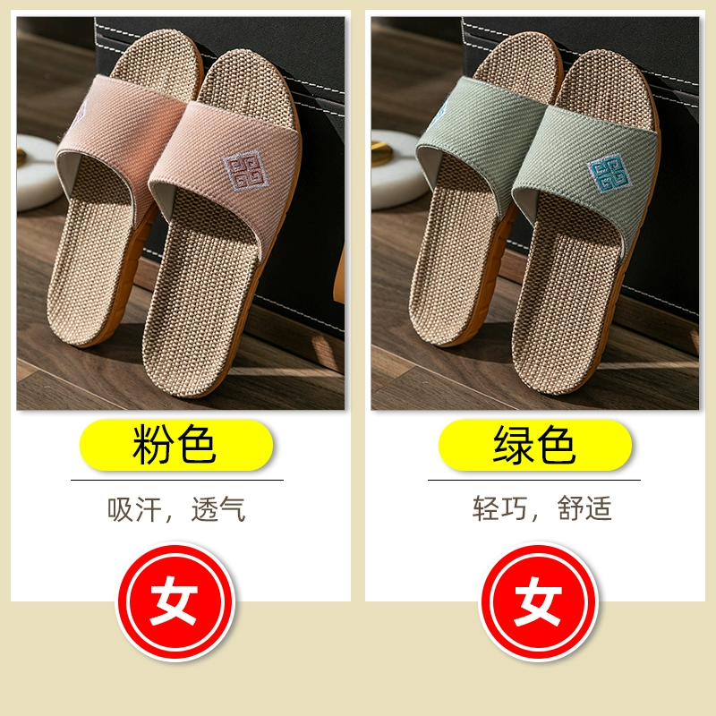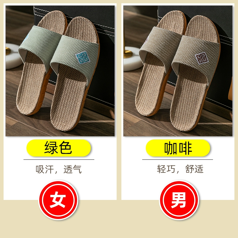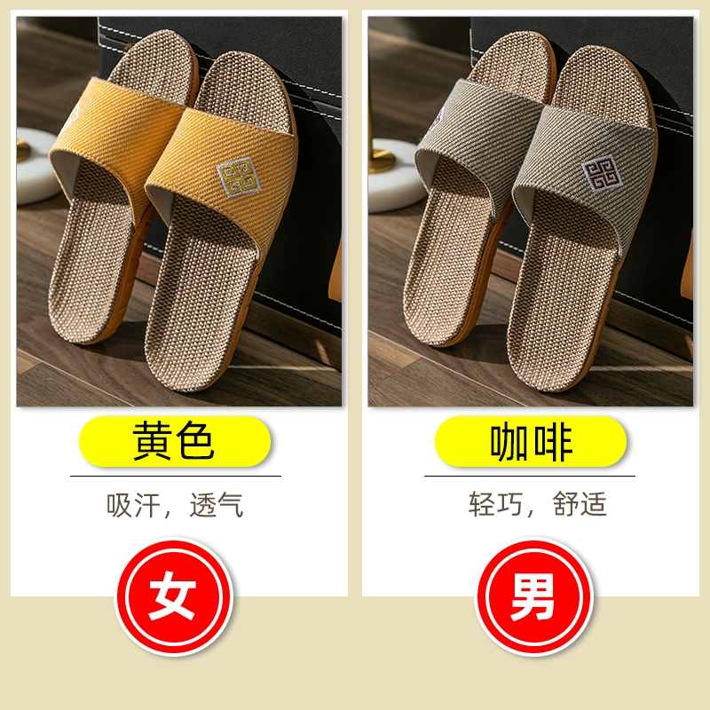 [2 Pairs] Linen Slippers for Women Summer Indoor Home Home Soft Bottom Silent Sweat-Absorbent Deodorant Anti-Slip Couple Men
