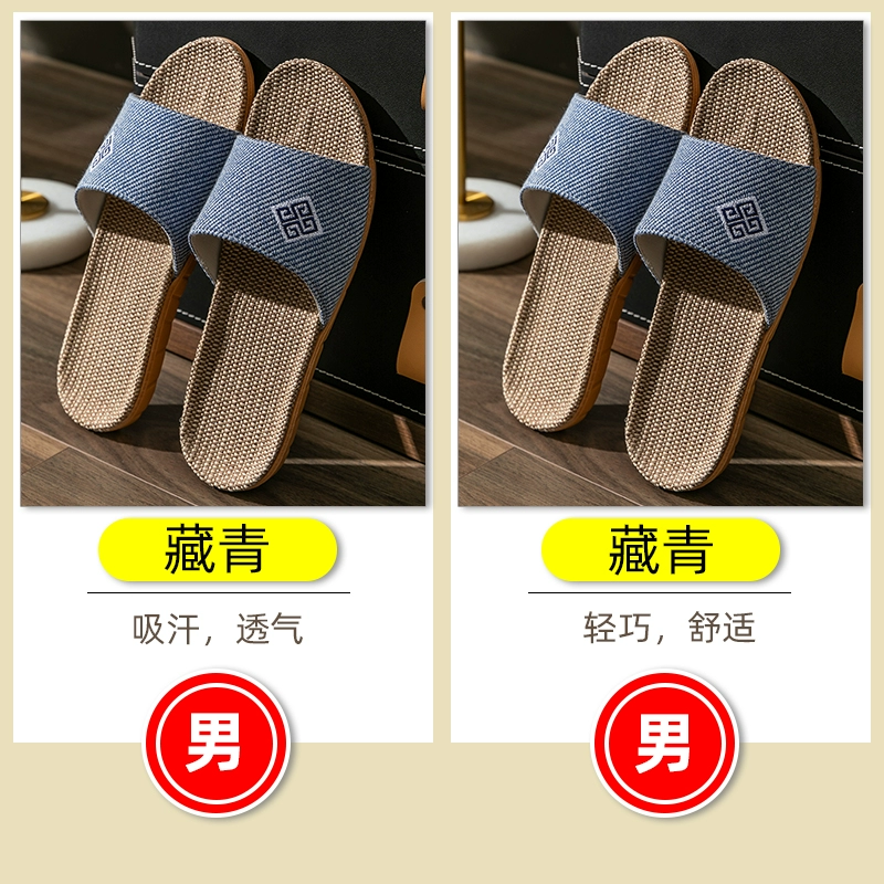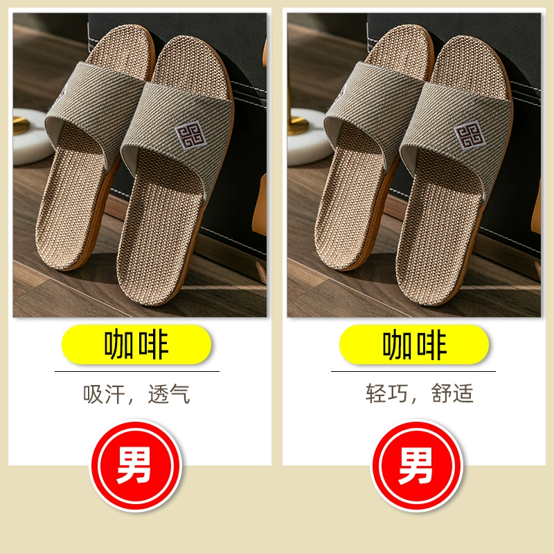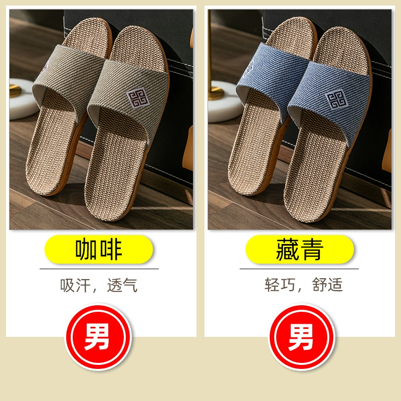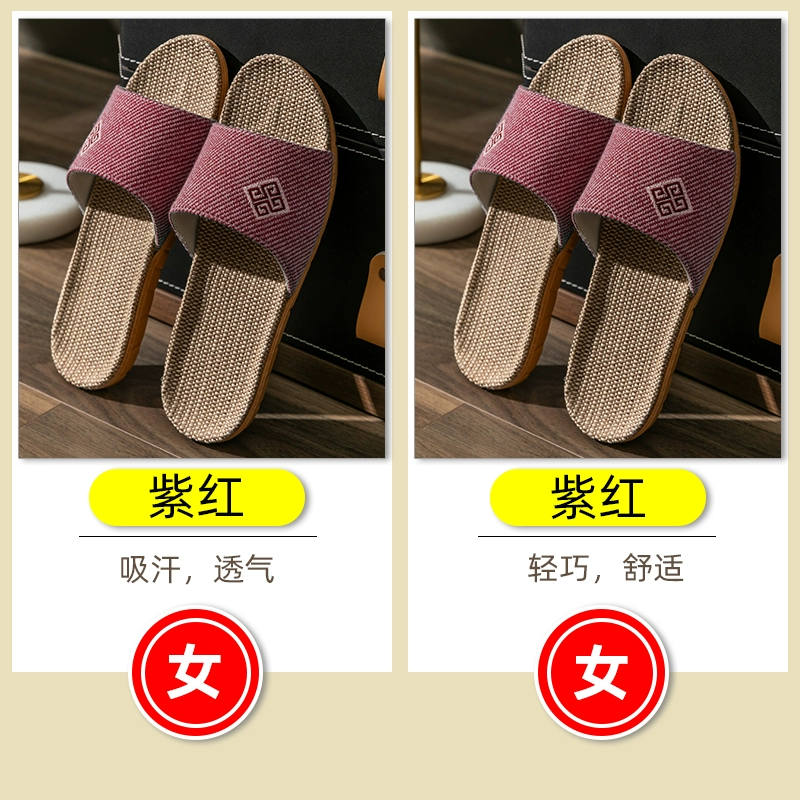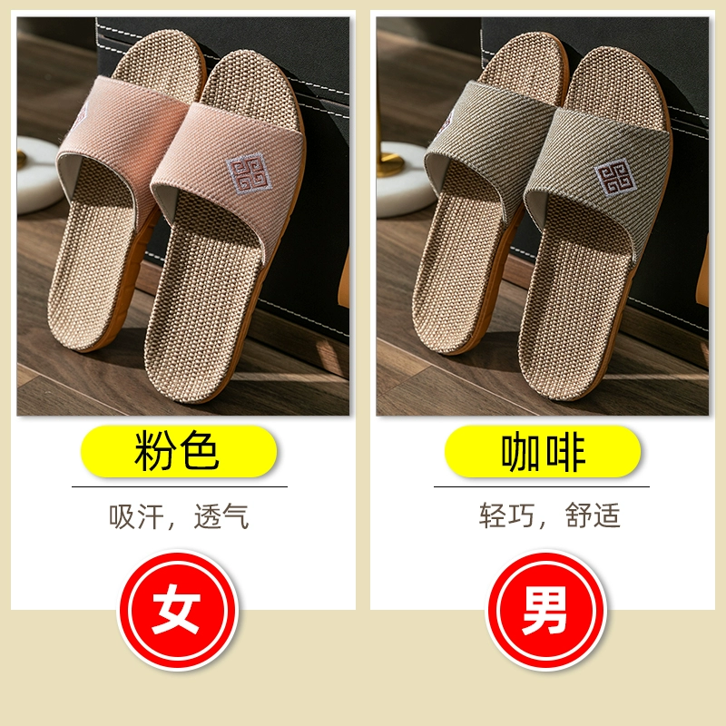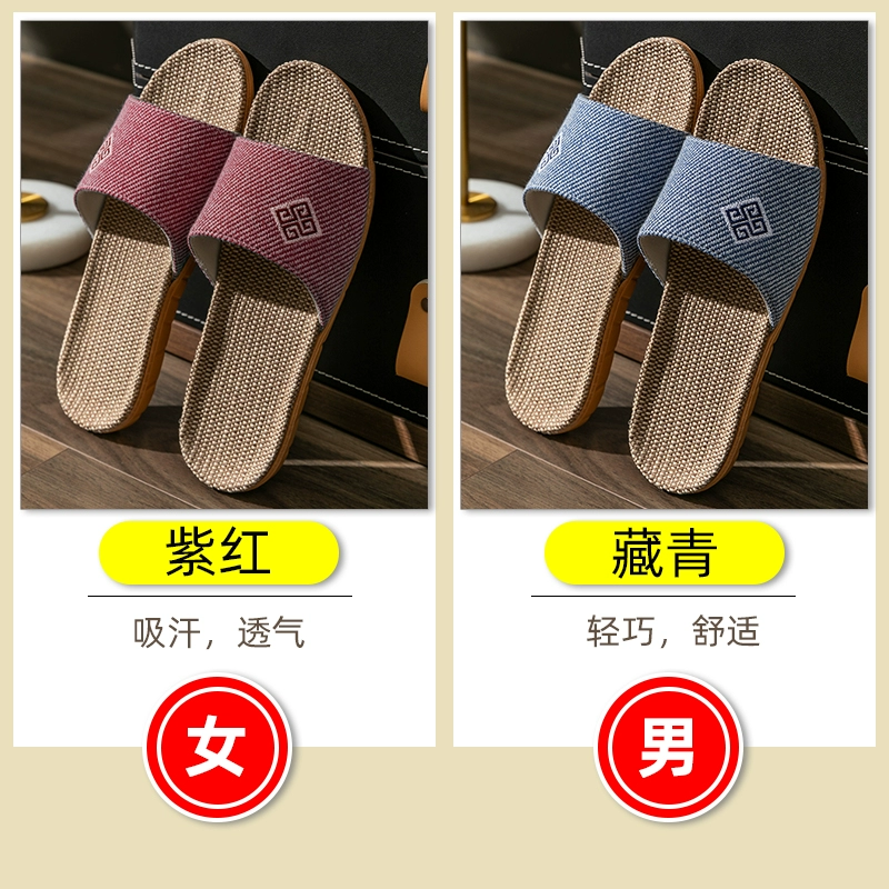 [2 Pairs] Linen Slippers for Women Summer Indoor Home Home Soft Bottom Silent Sweat-Absorbent Deodorant Anti-Slip Couple Men