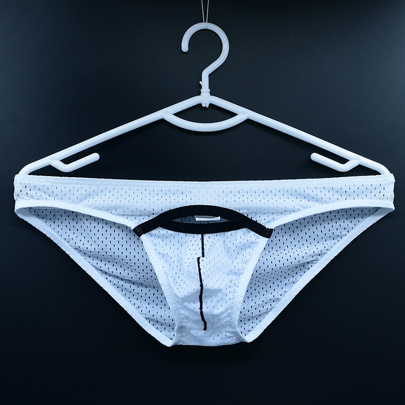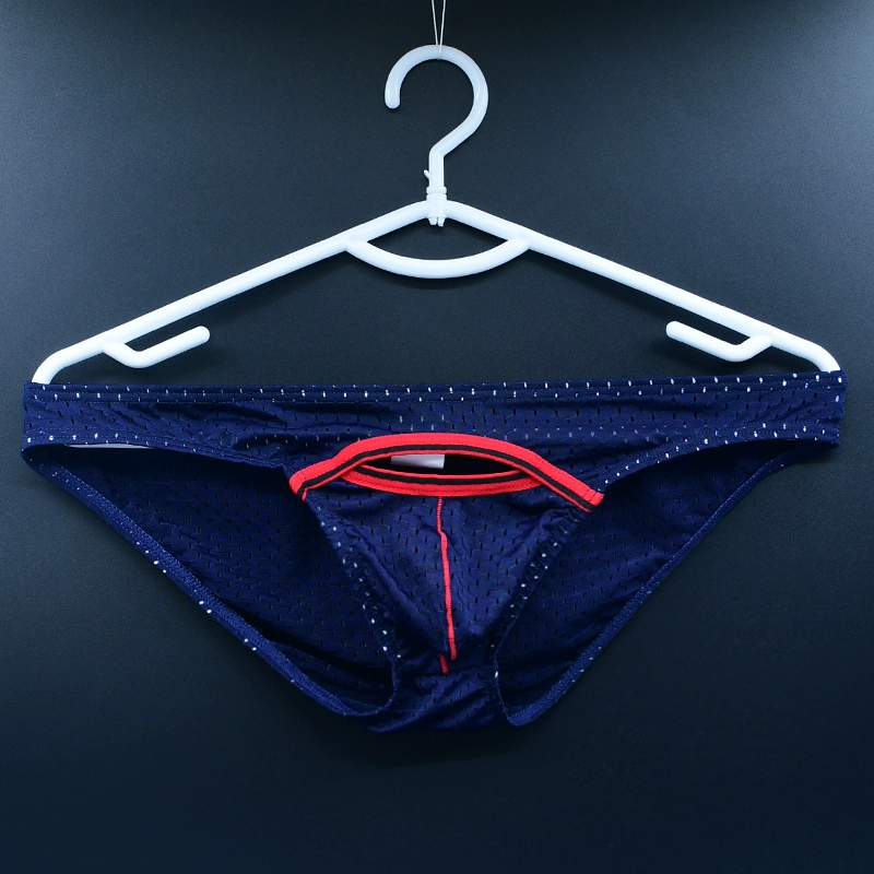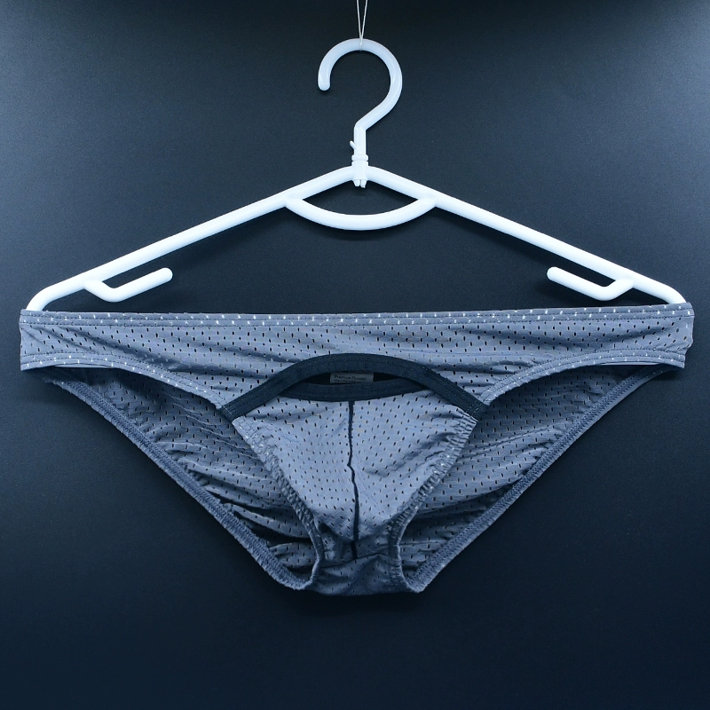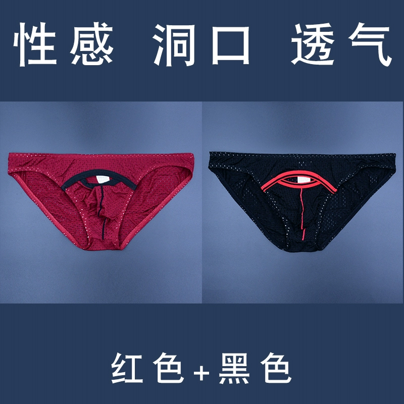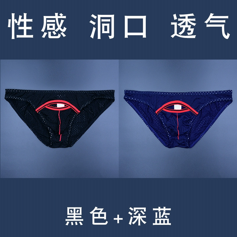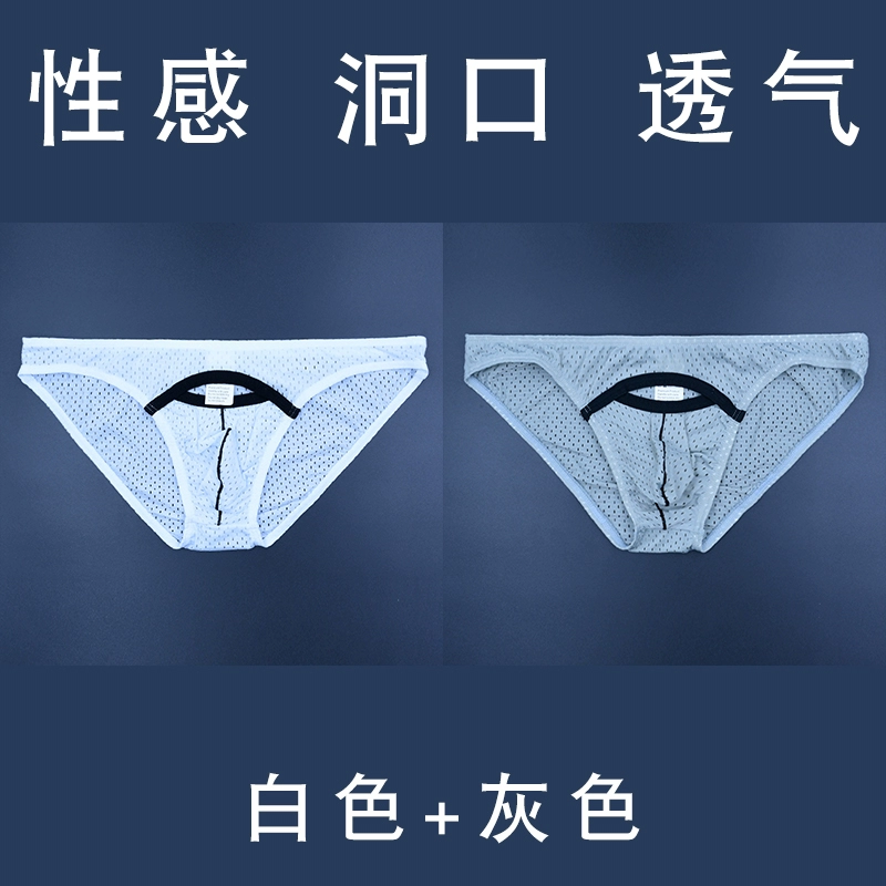 2 pairs of men’s briefs with low waist narrow edges sporty comfortable breathable ice silk smooth mesh hole quick-drying sexy shorts