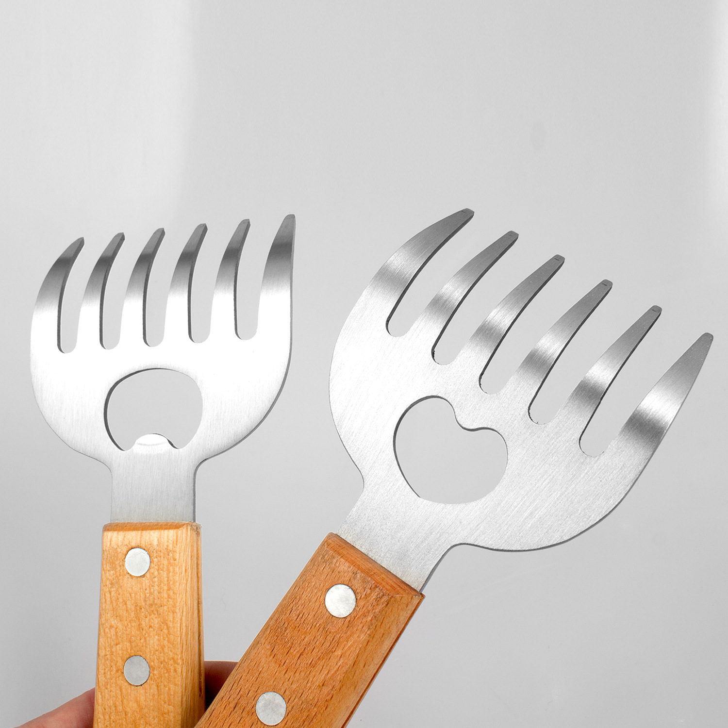 | nameOriginal | 2-piece long wooden handle stainless steel bear claw meat tearing device cooked food fixed hand tearing chicken meat dividing device tearing chicken hand protector  |
