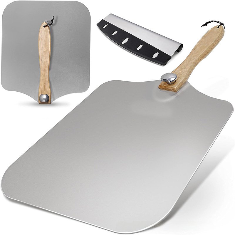 2-piece metal pizza shovel hand-cranked pizza cutter baking anti-scald transfer plate aluminum alloy pizza shovel Amazon