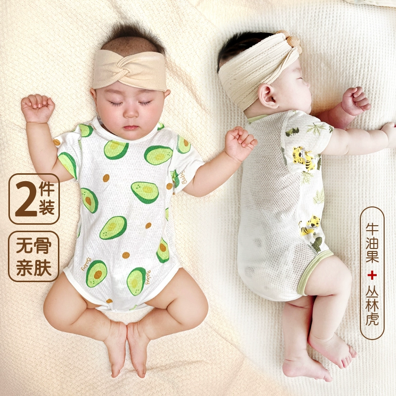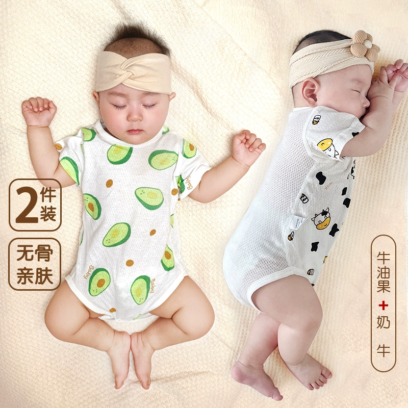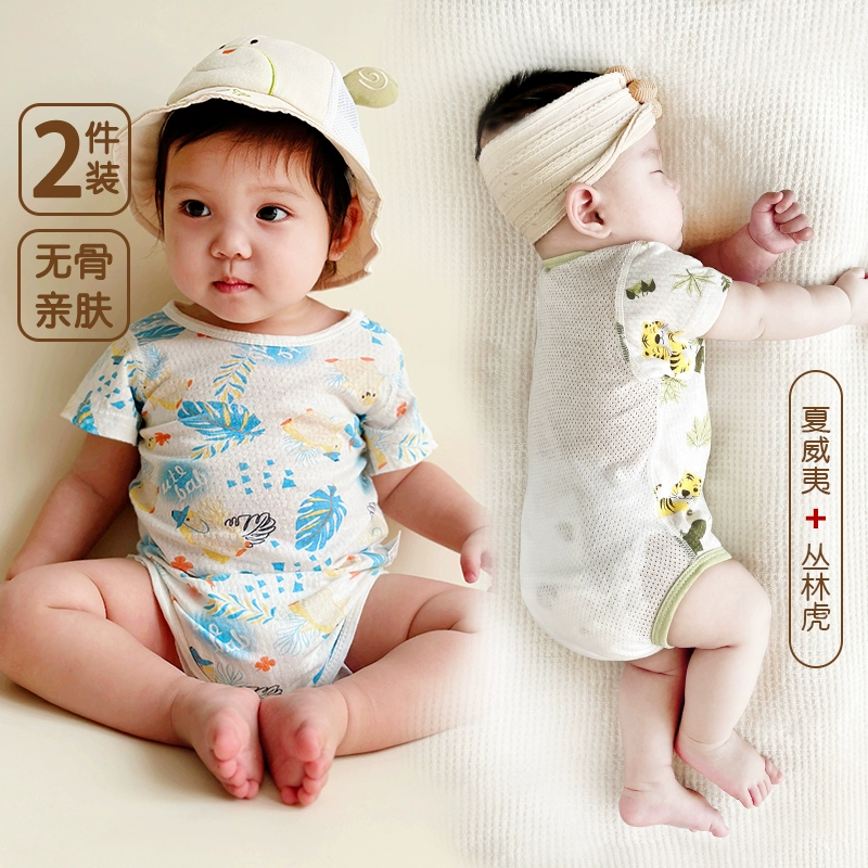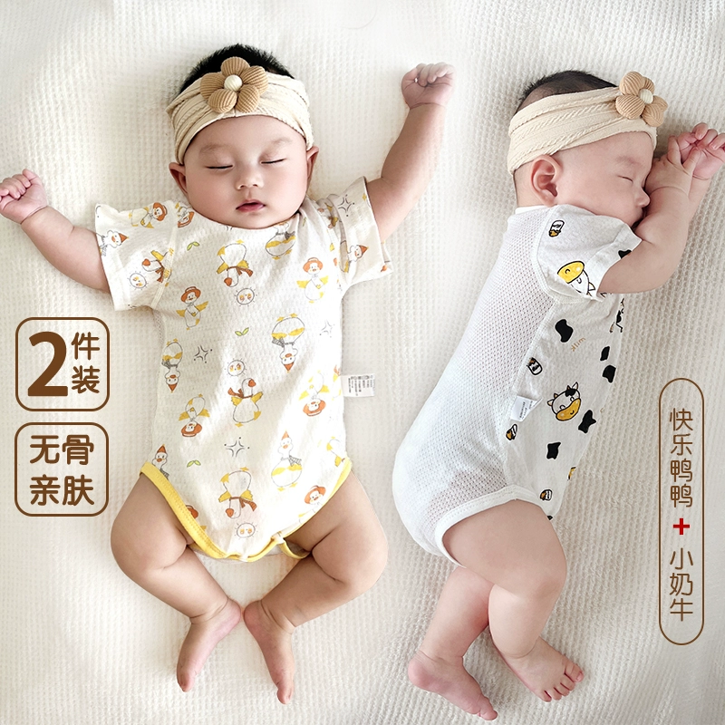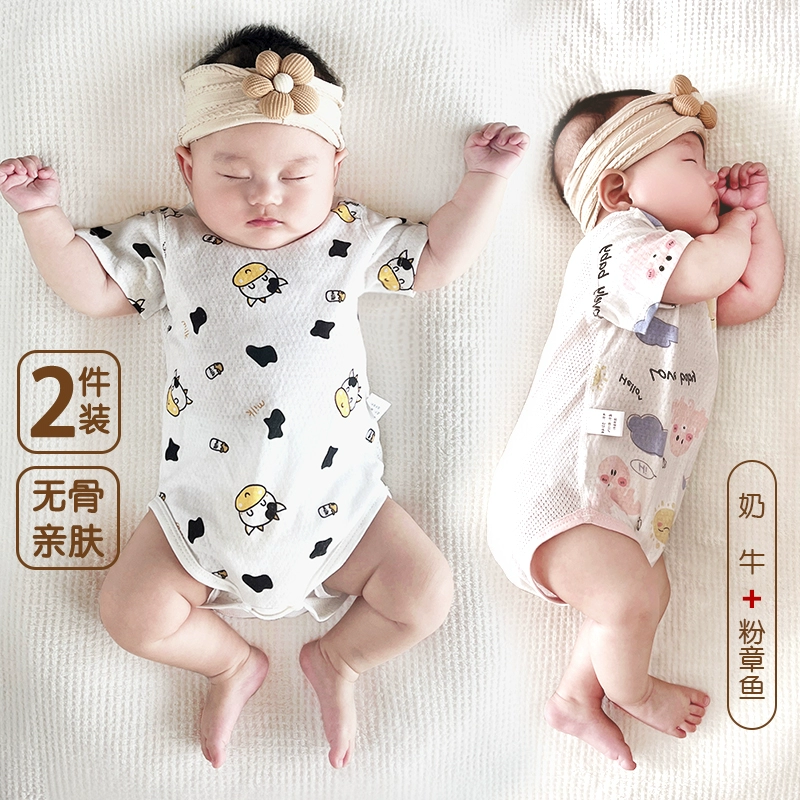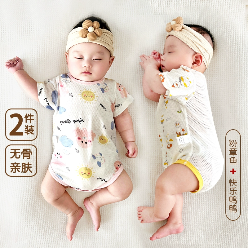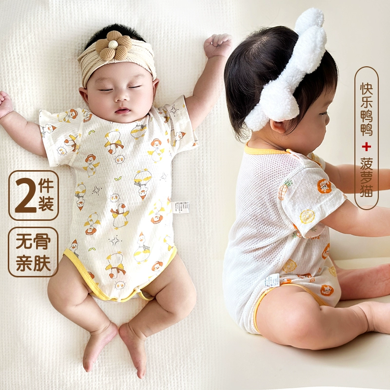 | nameOriginal | 2 pieces of baby triangle climbing short-sleeved pure cotton boneless summer thin newborn bag fart clothes baby harem pajamas |