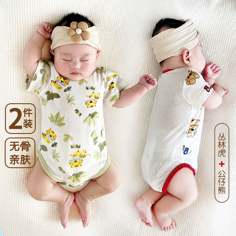 | nameOriginal | 2 pieces of baby triangle climbing short-sleeved pure cotton boneless summer thin newborn bag fart clothes baby harem pajamas |