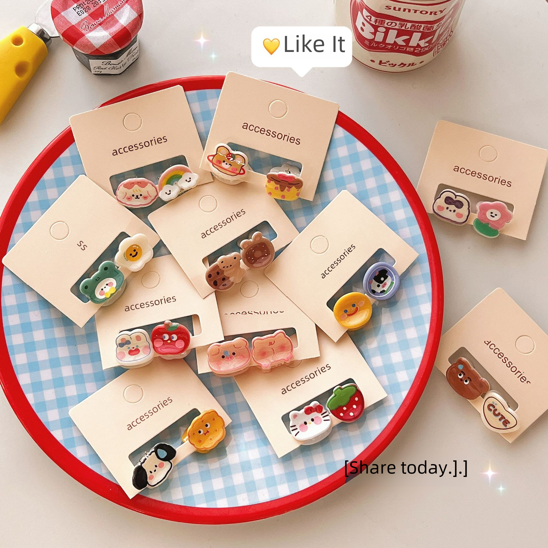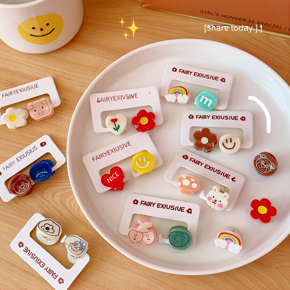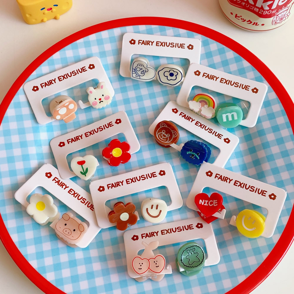 2 pieces of hair accessories Candy-colored cute mini hairpin Cartoon bear bangs clip broken hair clip student accessories
