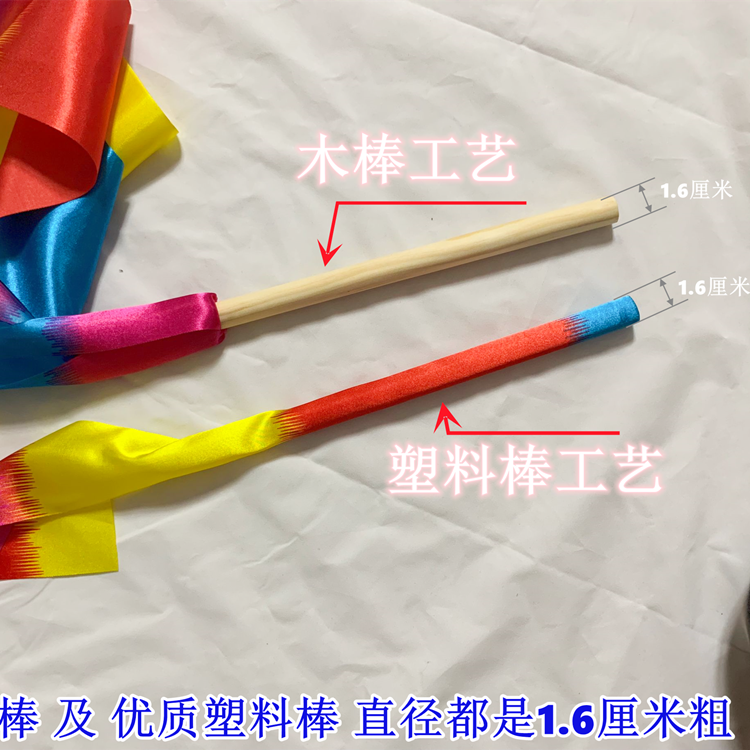 | nameOriginal | 2 Roots Kindergarten Children's Gymnastics Ribbon Gymnastics Gymnastics Props Wooden Stick Color Silk Ribbon Dance |