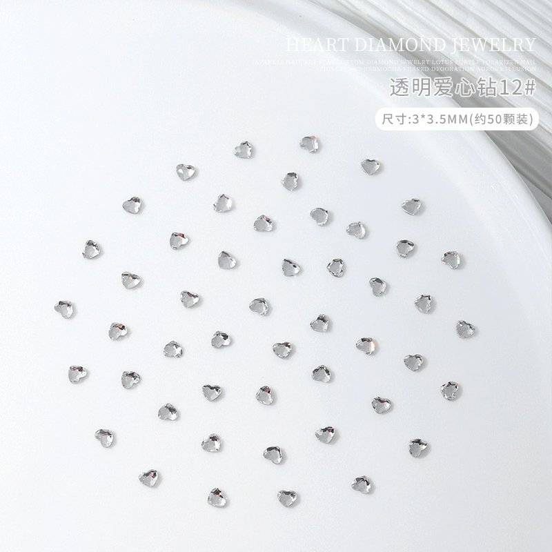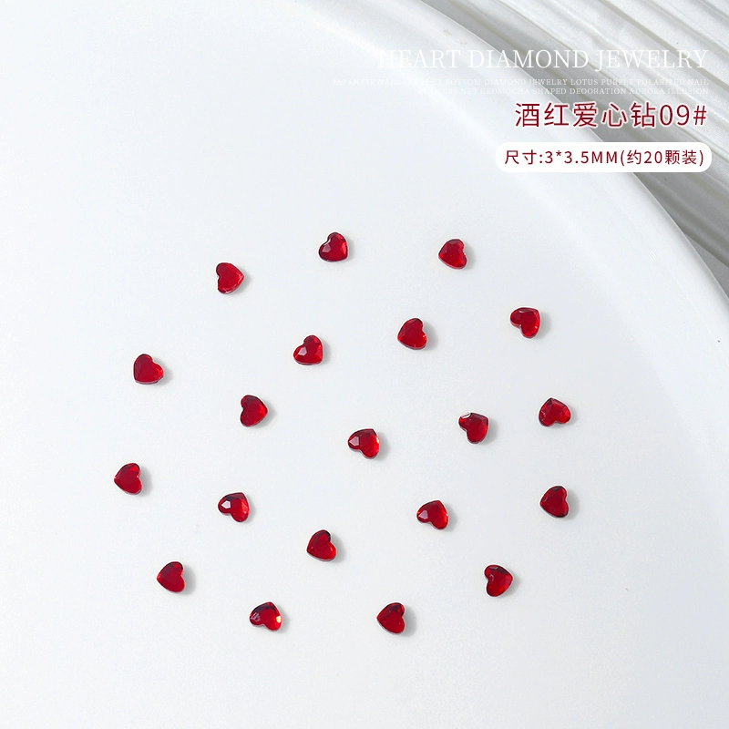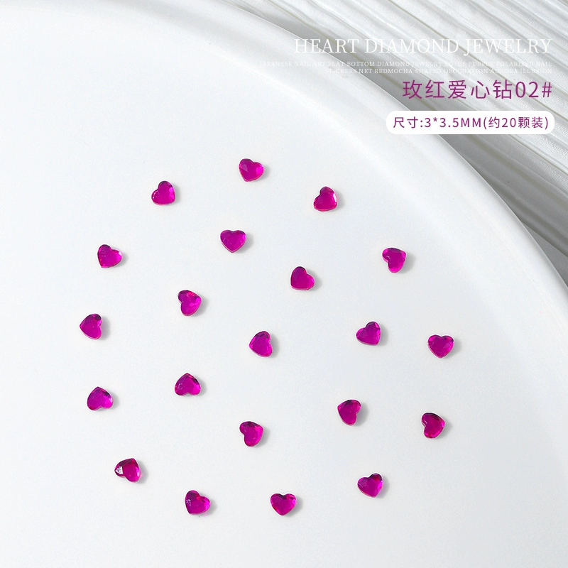 20 mixed mini love nail art accessories, colorful small hearts, peach hearts, flat bottom special-shaped diamonds, flashing nail diamonds