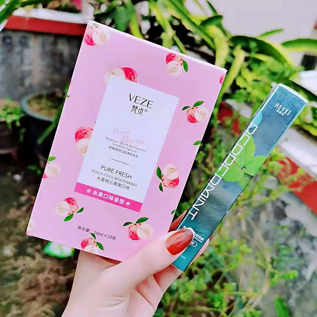 | nameOriginal | 20 pieces of peach and mint flavored mouthwash, orange deodorant, clean and refreshing oral mouthwash, portable travel pack |