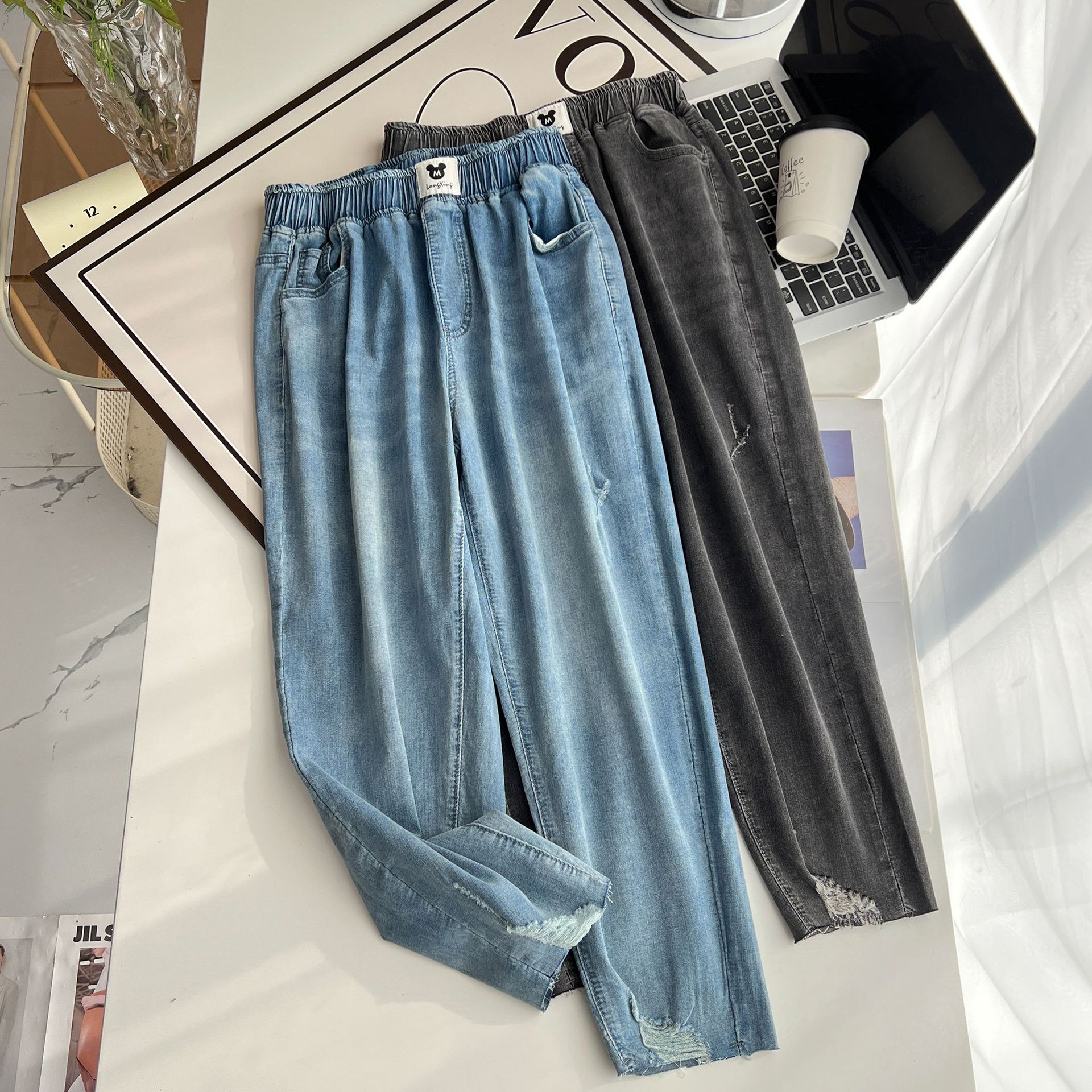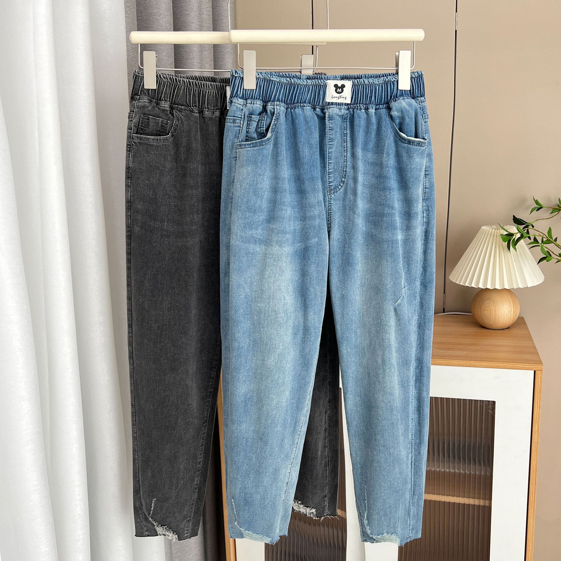 | nameOriginal | 200 Jin Fat MM Slim Spring and Autumn New High Elastic Ripped Cowboy Cropped Pants Skinny Pants Plus Size Women's 2050 |