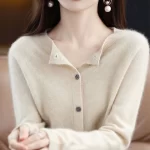 200 pounds belly-covering wool round-neck cardigan for spring and autumn