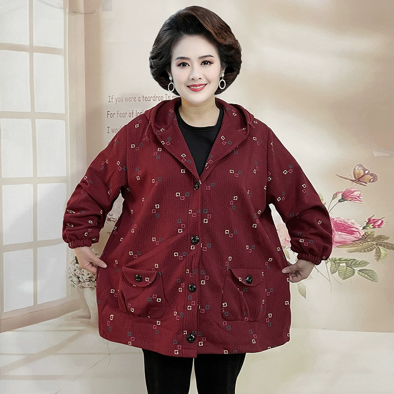 200 pounds fat mother autumn windbreaker special body plus fat plus size middle-aged and elderly spring and autumn long-sleeved coat grandma outfit