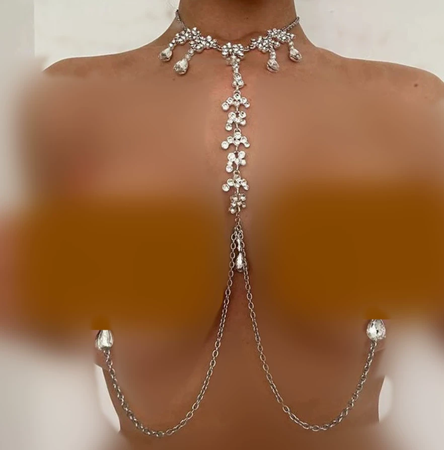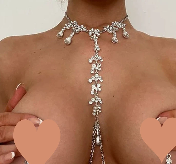 | nameOriginal | 2006 Sexy inlaid breast chain necklace with diamonds shining sexy, charming and alluring body with adjustable rubber ring |