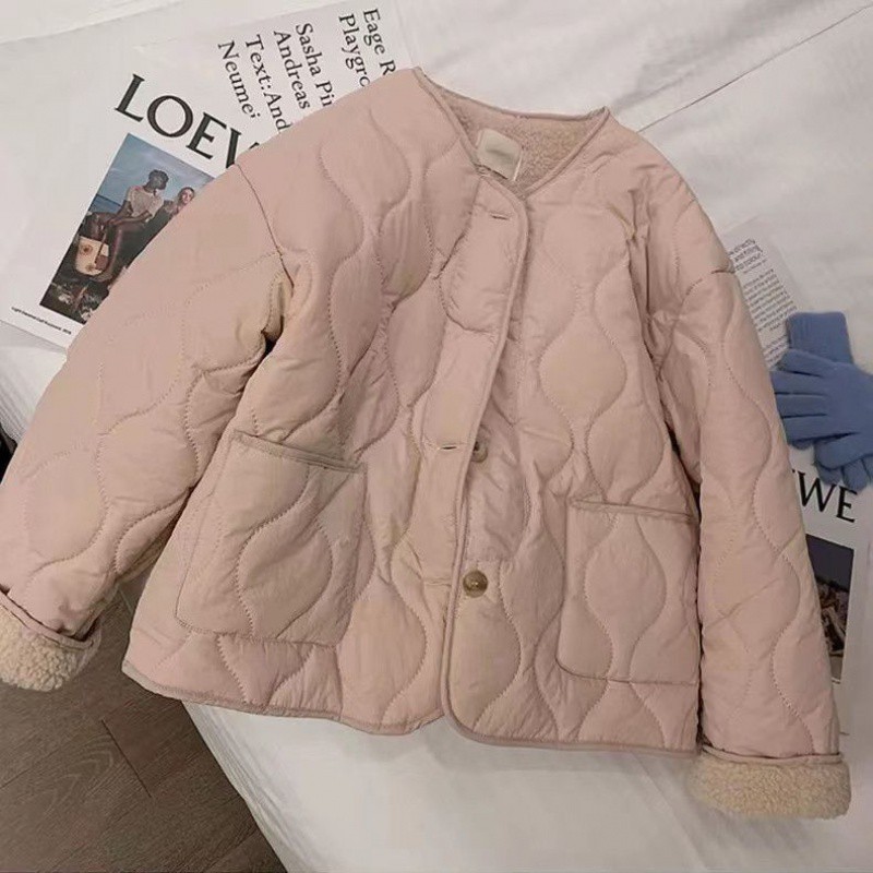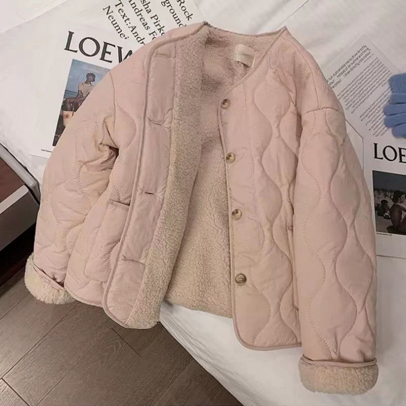 | nameOriginal | 200kg chubby girl plus size pink lamb wool cotton-padded jacket female Korean fashion crew neck lamb wool coat cotton-padded jacket cotton-padded jacket |