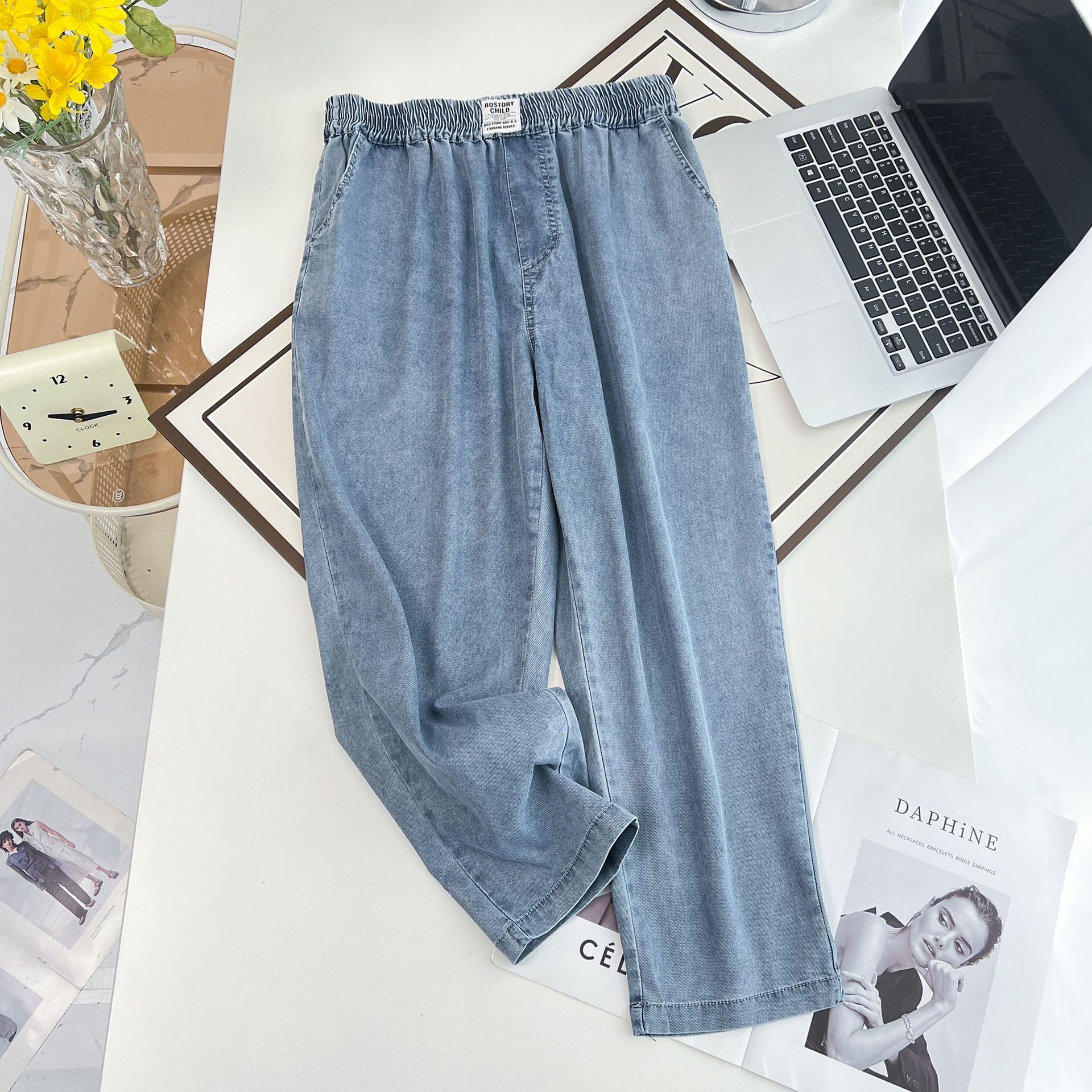 | nameOriginal | 200kg fat MM spring and summer new Korean version of simple thin denim pants casual pants plus size women's 2230 |