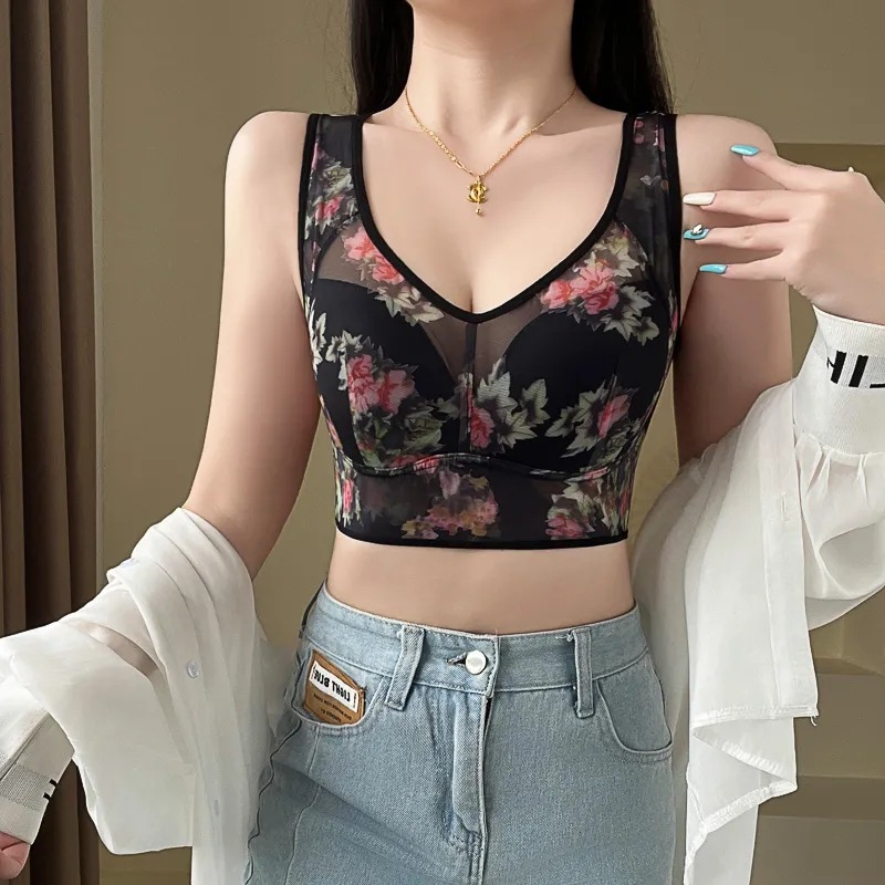 | nameOriginal | 200kg plus size middle-aged women's mother underwear women's fixed Cup vest printed wireless lace bra |