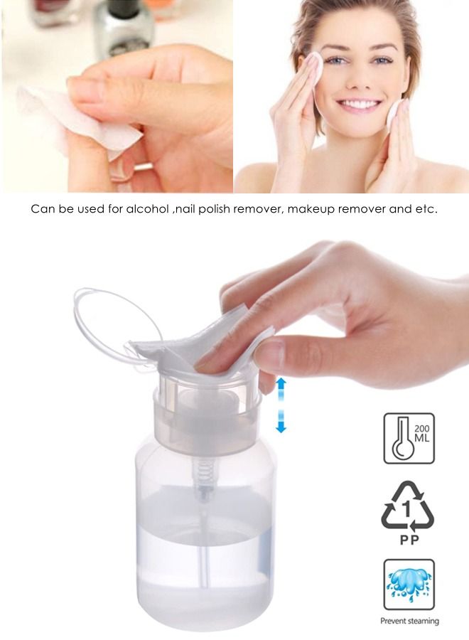 Crafted from high-quality PET material and featuring a secure PP cap, this product is completely safe and eco-friendly. With a convenient 200ml capacity, it is lightweight and easy to carry, making it the perfect travel companion. Simply place a cotton pad on the top and press the center of the bottle to dispense liquid without any spills. Ideal for dispensing liquids onto cotton balls, swabs, brushes, and nail towels, this versatile product can be used for a variety of purposes, including alcohol, nail polish remover, makeup remover, and more.