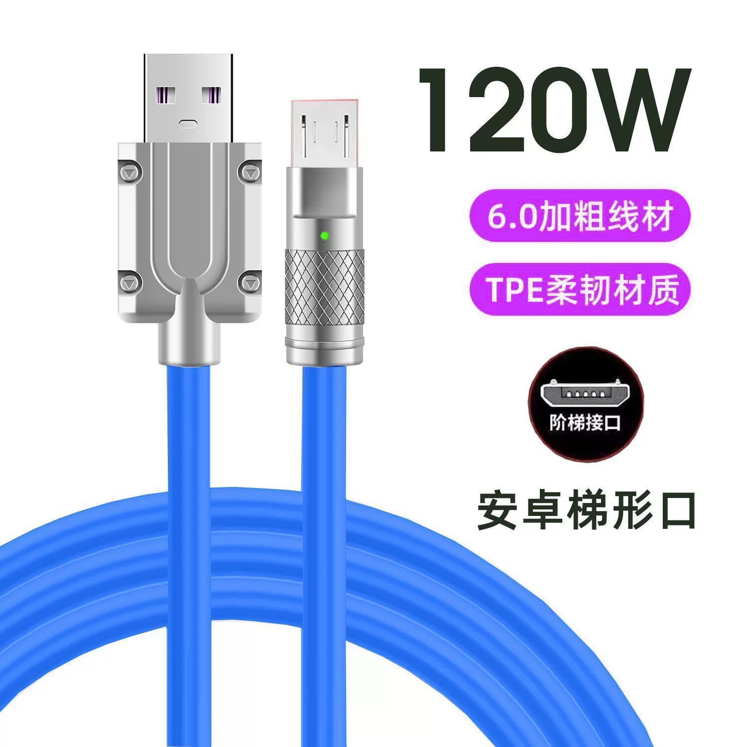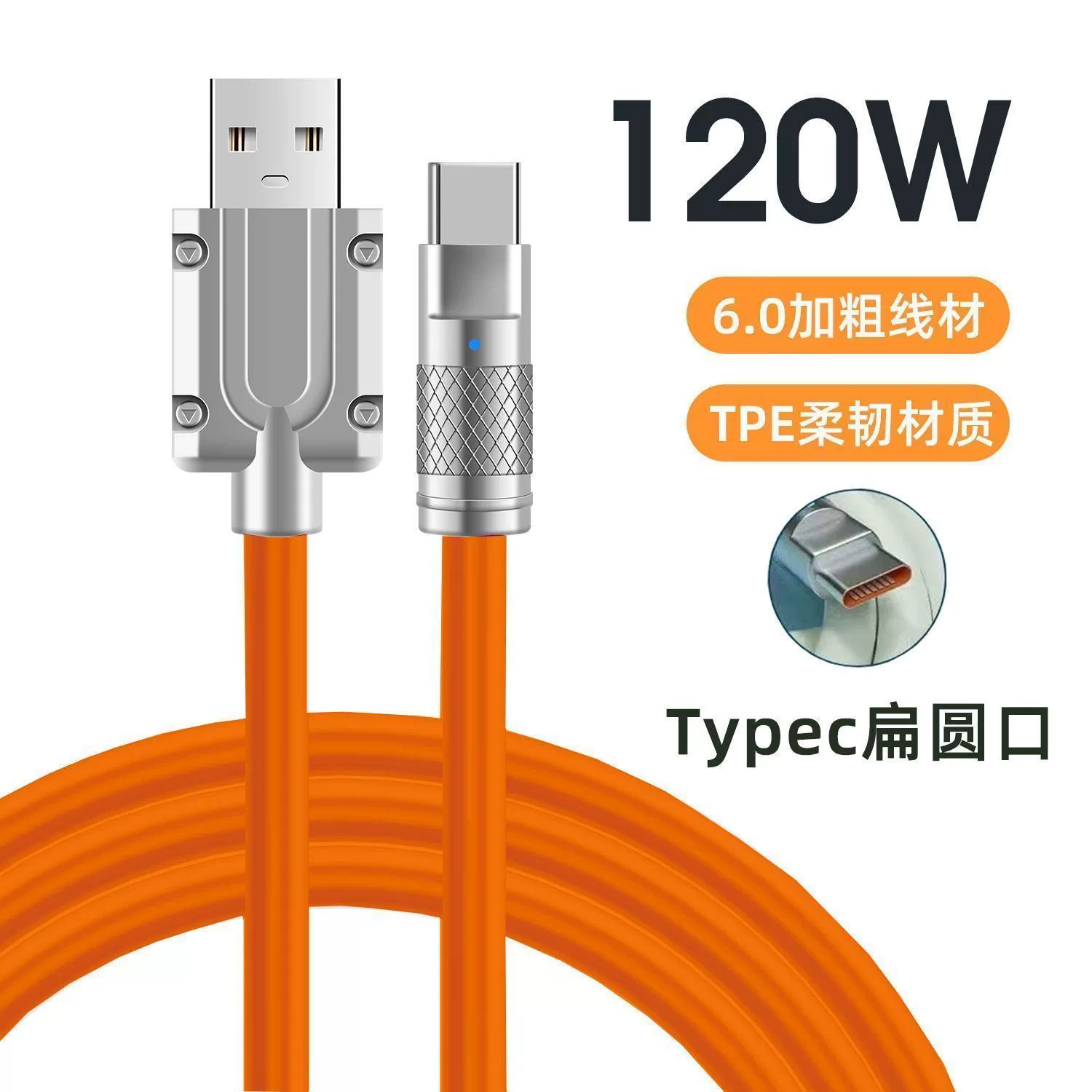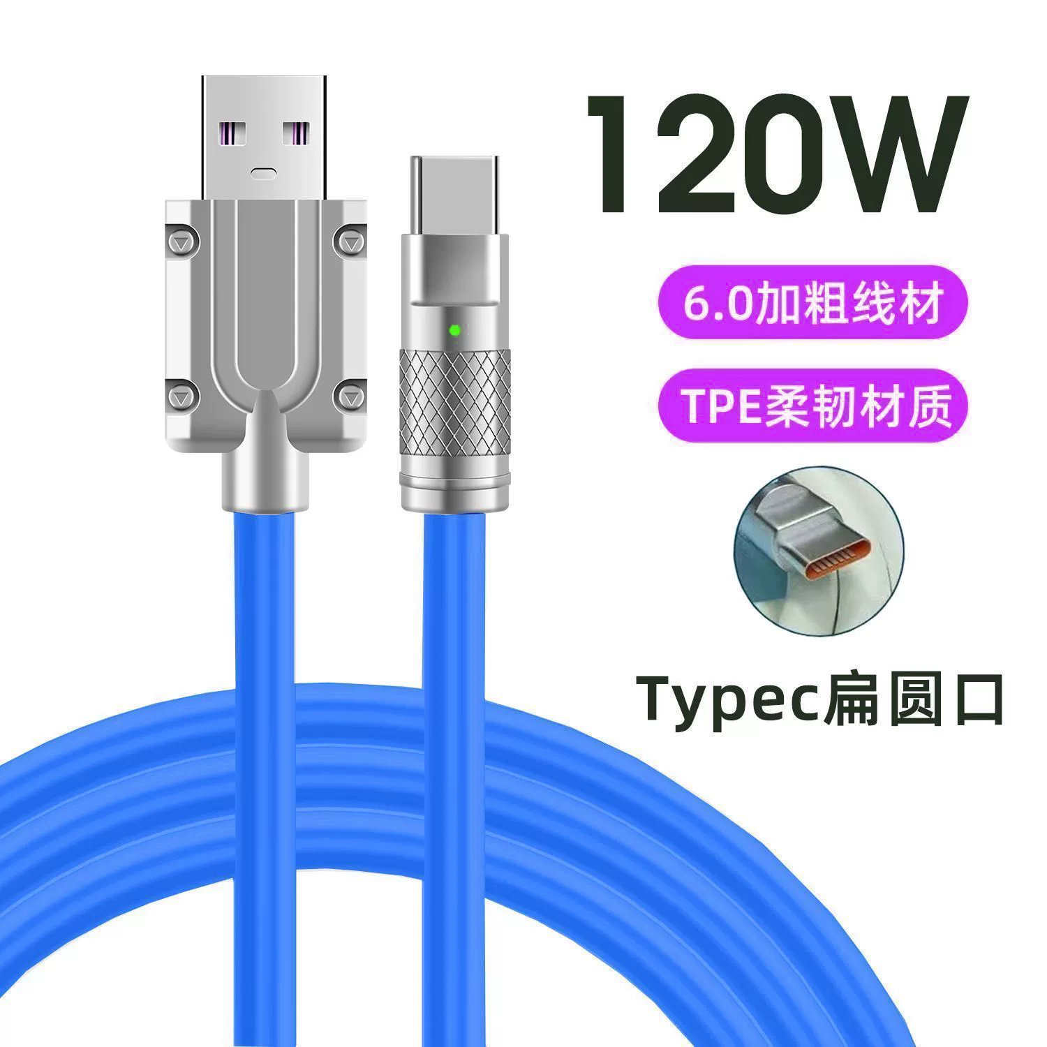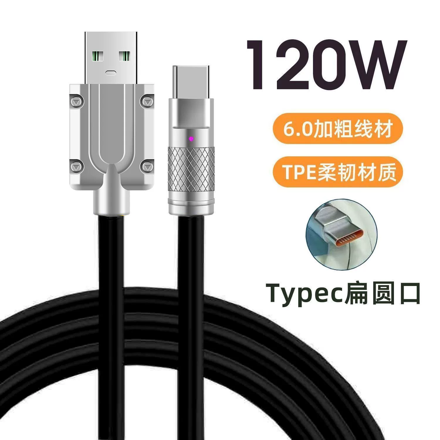 200W bold data cable 6A super fast charging Android flash charging suitable for Huawei Honor fast charging anti-freeze tc charging cable