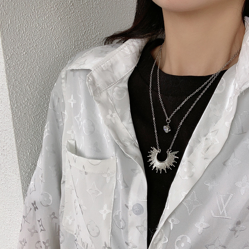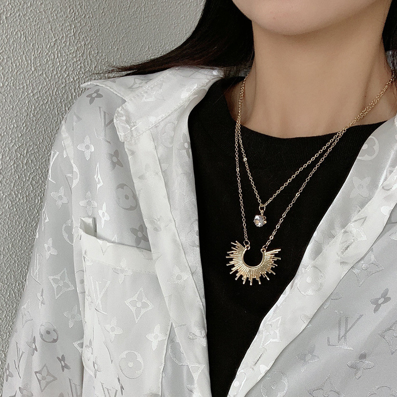 | nameOriginal | 2018 New necklace fashion double-layer rhinestone fan-shaped clavicle chain cross-border e-commerce necklace for women |