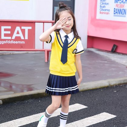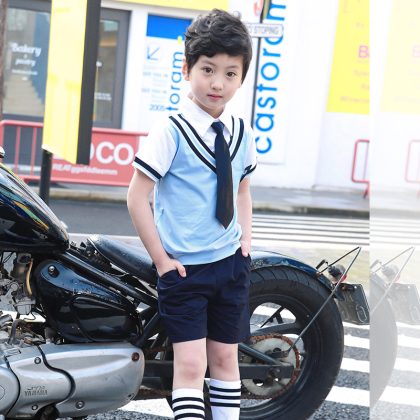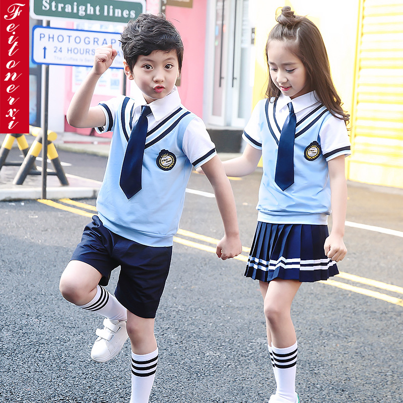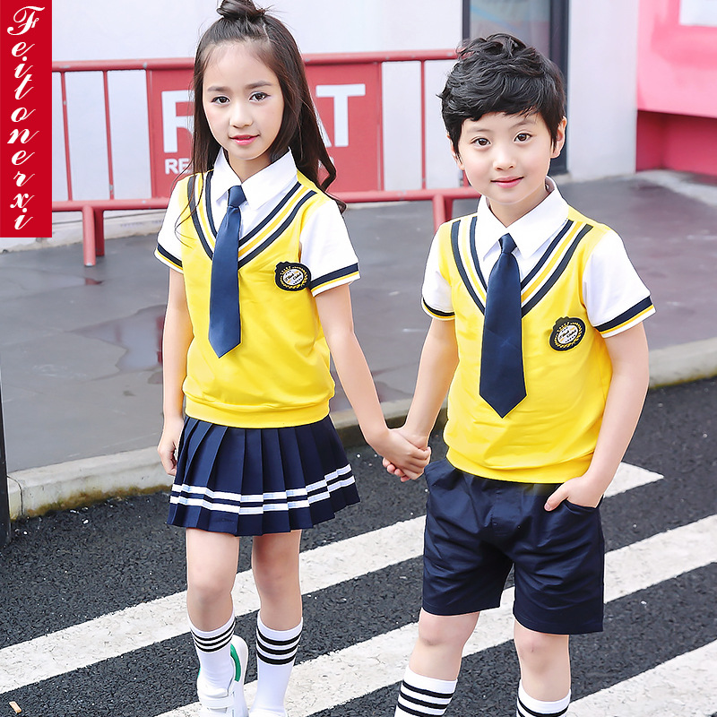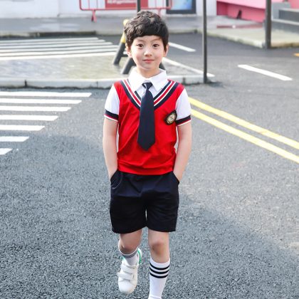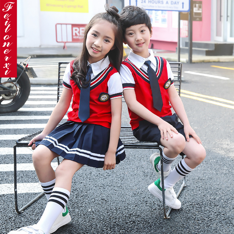 | nameOriginal | 2018 new primary school uniform summer Korean version of British cotton sports color matching short sleeve kindergarten Garden clothing wholesale |