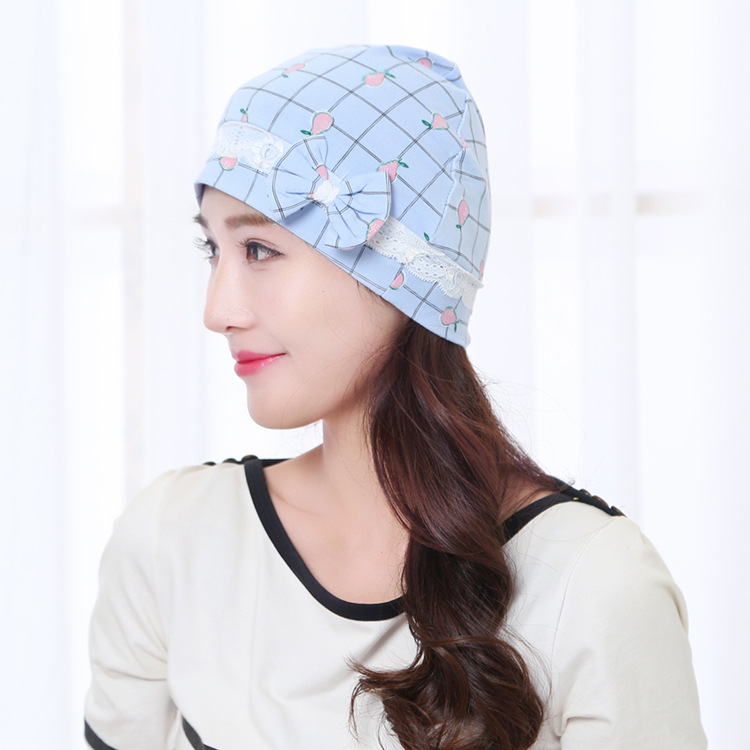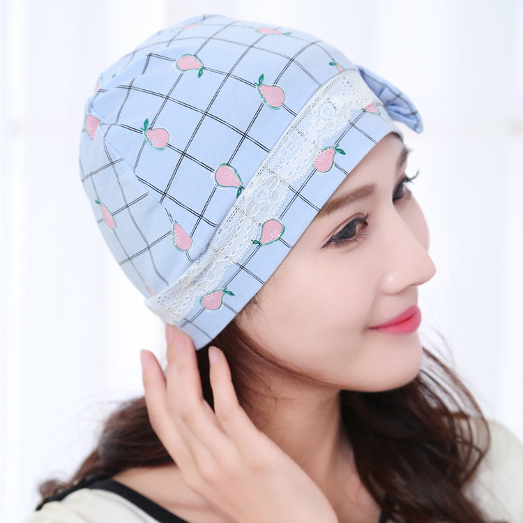 2018 Spring new pregnancy cap cotton popular Plaid pear windproof hair care moon cap