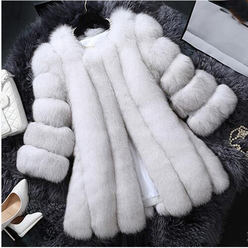 2019 autumn and winter New Korean style women’s mid-length faux fur coat slim-fit socialite fox fur thickened overcoat for women