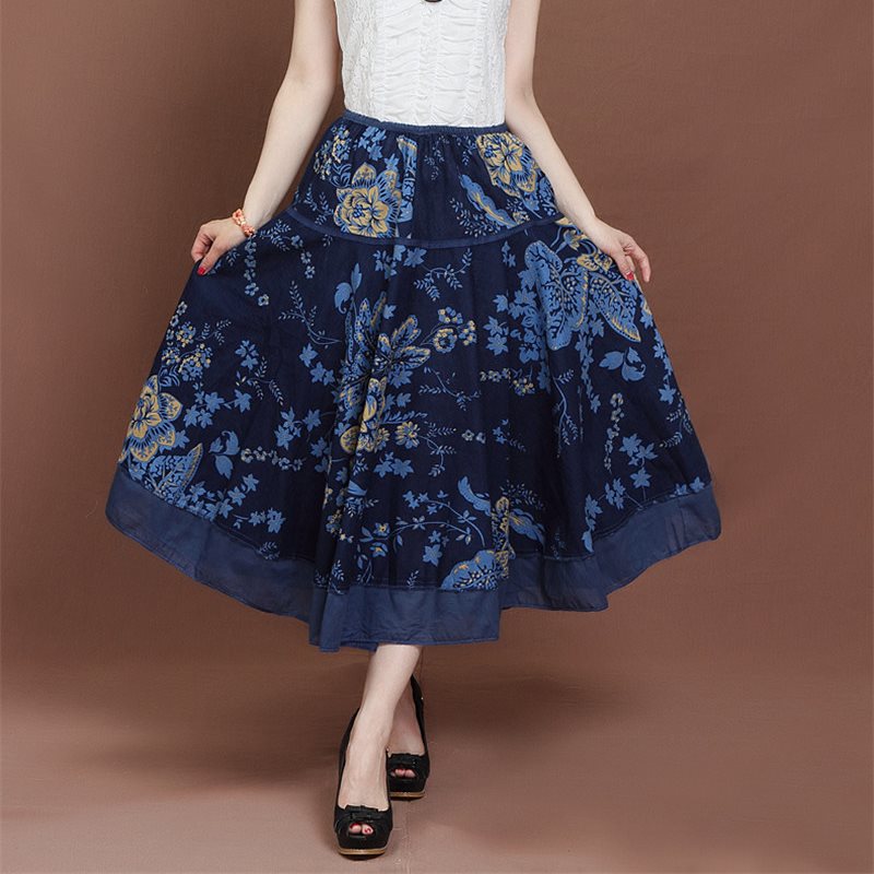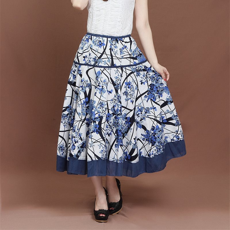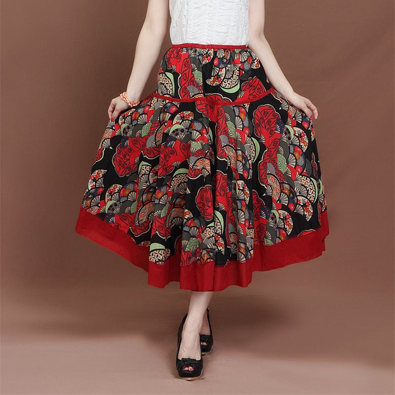 | nameOriginal | 2019 Summer New Women's Cotton and Linen Print Ethnic Style Women's Long Dress A- line Skirt Large Skirt Mid-length Skirt |