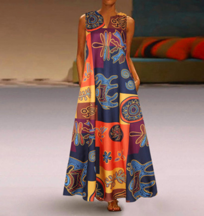 | nameOriginal | 2020 AliExpress New Explosions Women's V-neck Sleeveless Summer Retro Printed Color Block Stitching Dress 2017# |