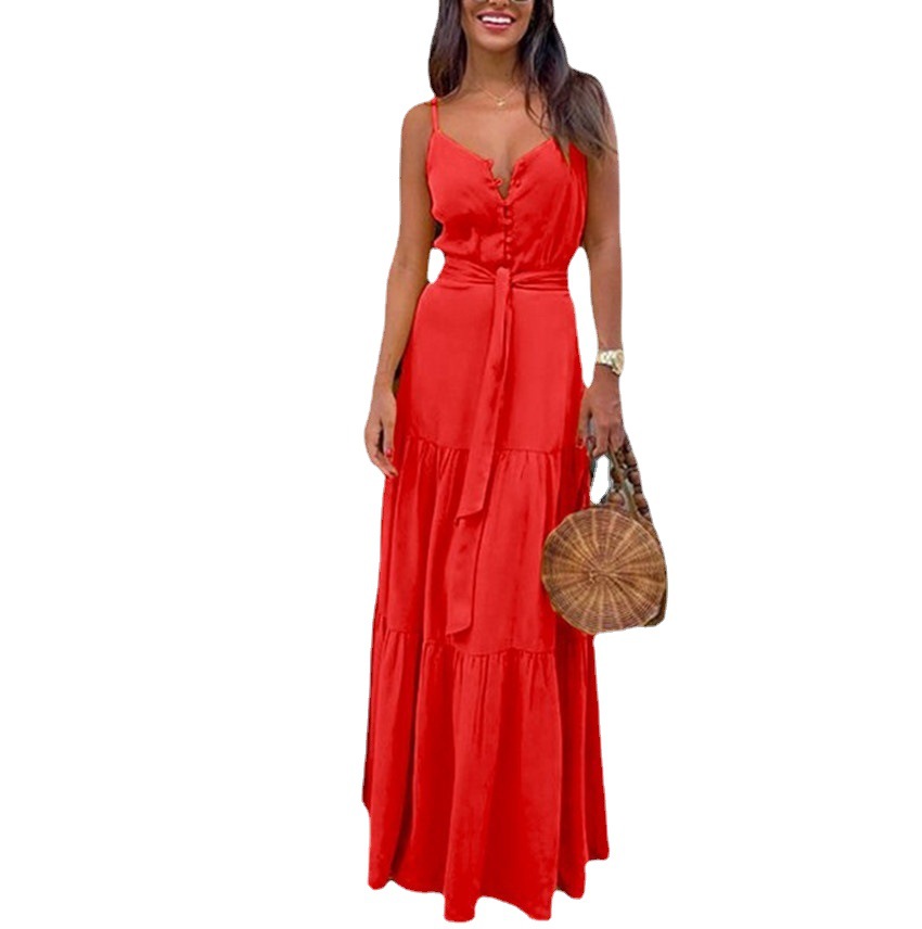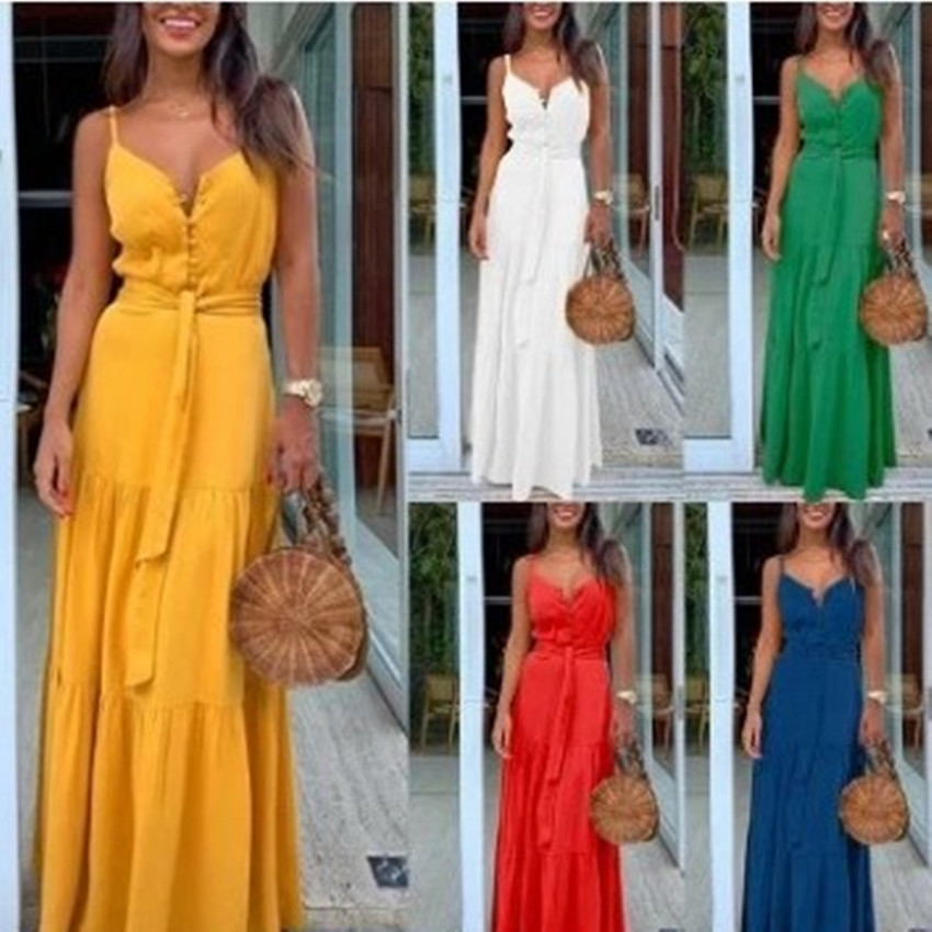 | nameOriginal | 2020 Amazon summer new European and American women's personalized button V-neck stitching sling dress dress |