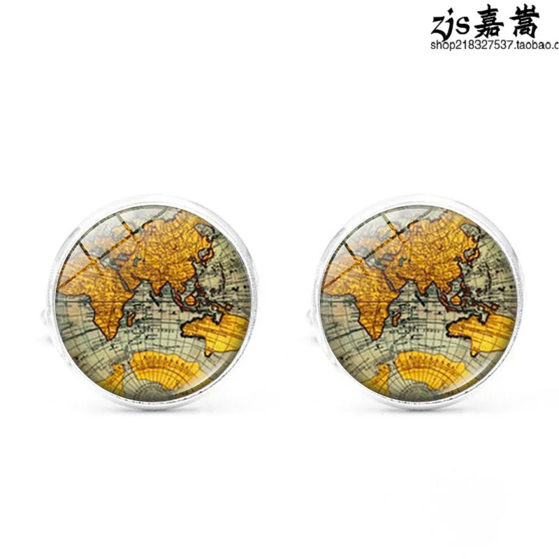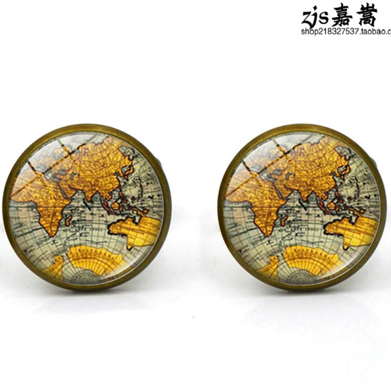 2020 New Accessories Earth Planet World Map Men’s Cufflinks Metal French Cufflinks and Cuff Studs Jewelry