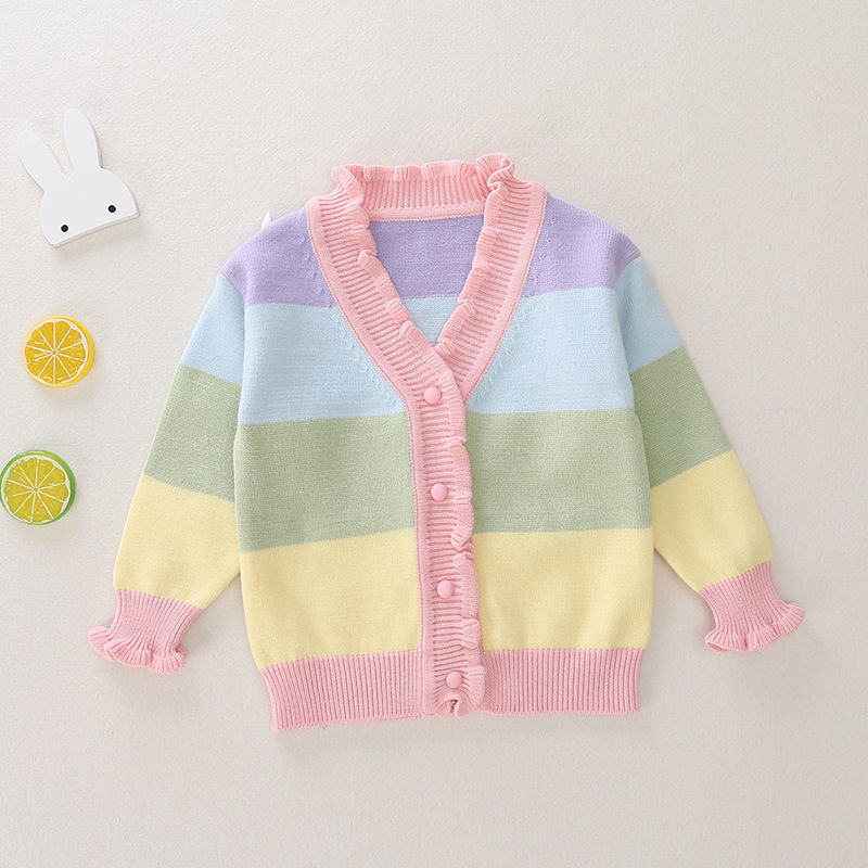 | nameOriginal | 2020 Spring and Autumn Girls' Rainbow Striped Knitted Cardigan Baby's Sweater with V-neck for Girls |