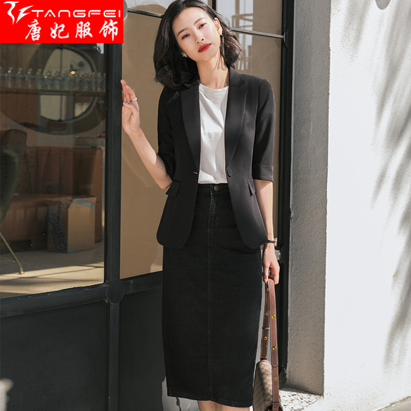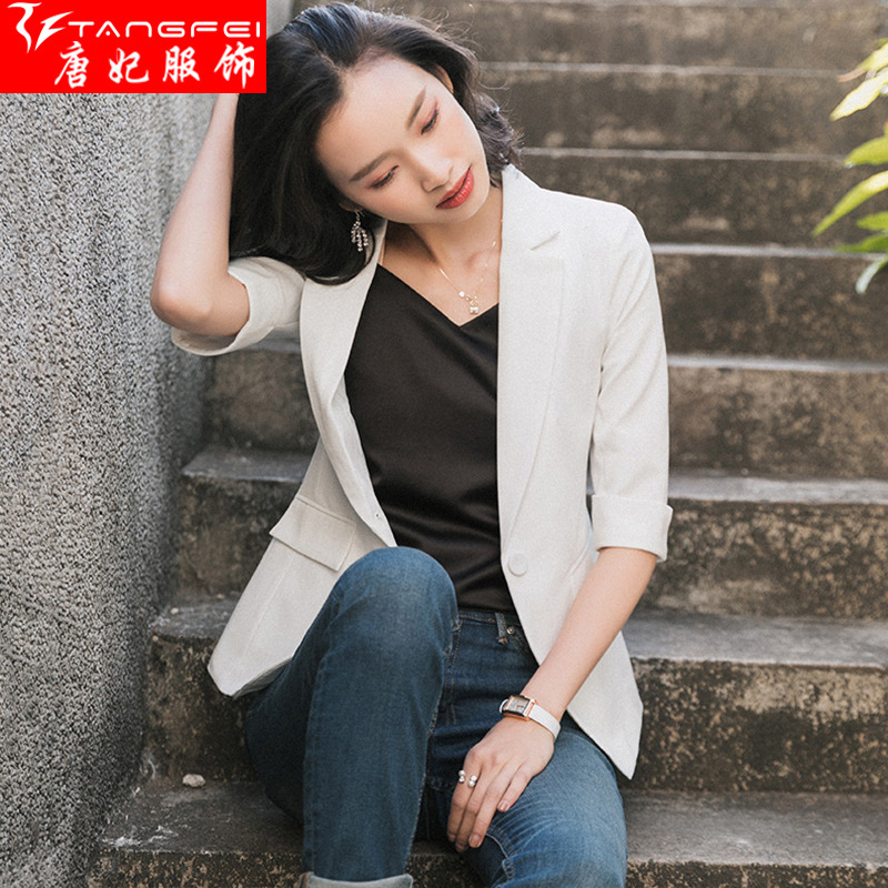 | nameOriginal | 2020 Spring and Summer New Professional White Small Suit Jacket Women's Elegant All-match Mid-sleeve Black Suit Women's Top |
