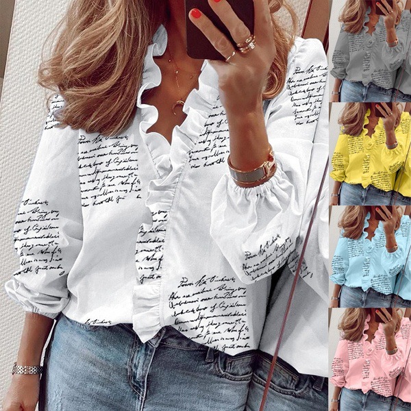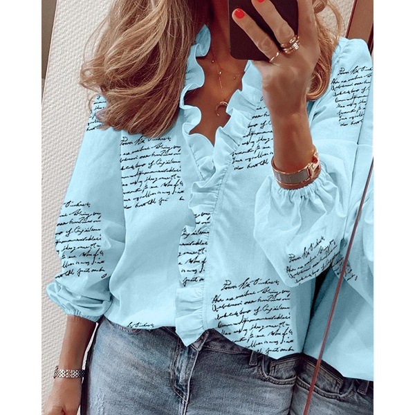 | nameOriginal | 2020EBAY AliExpress wish hot summer ruffled long sleeve V-neck letter print women's shirt |