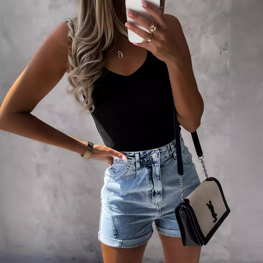 | nameOriginal | 2021 AliExpress wsih Amazon popular summer simple solid color sleeveless V-neck pit Women's vest |