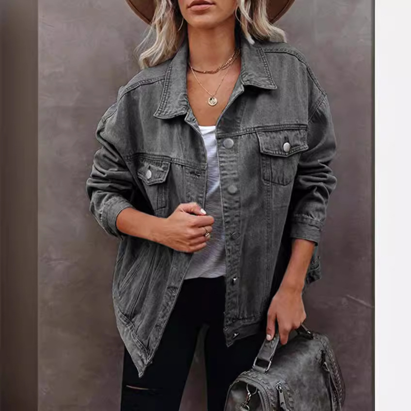 | nameOriginal | 2021 Amazon New Cross-border Foreign Trade European and American Fashion Denim Jacket Women's Lapel Long Sleeve Cotton Jacket Top |