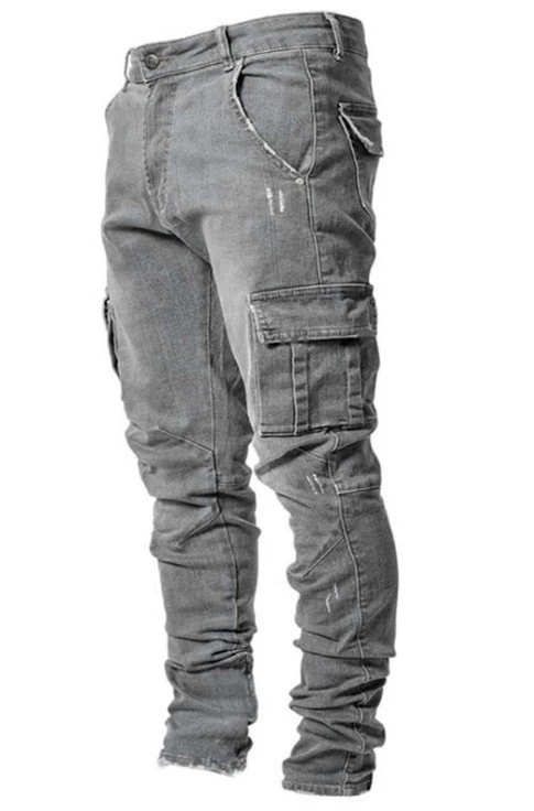 2021 Working Jeans Men’s Pockets Small Legs Jeans Men Cargo Pants Man Trousers