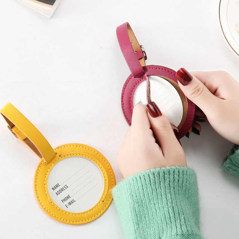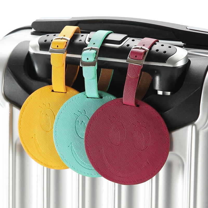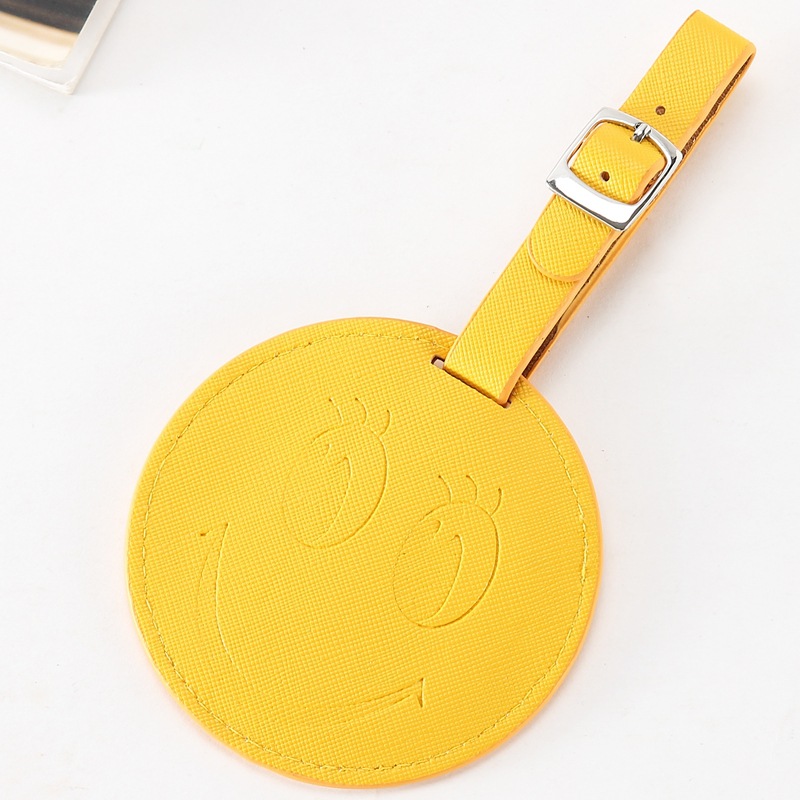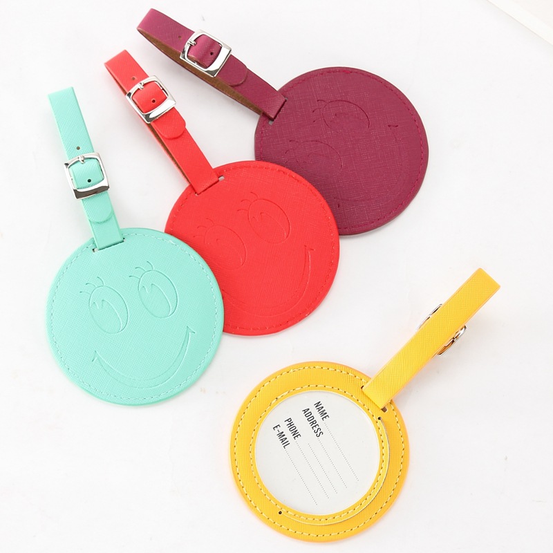 2021 cross-border supply round smiley PU luggage tag suitcase tag boarding pass luggage accessories label