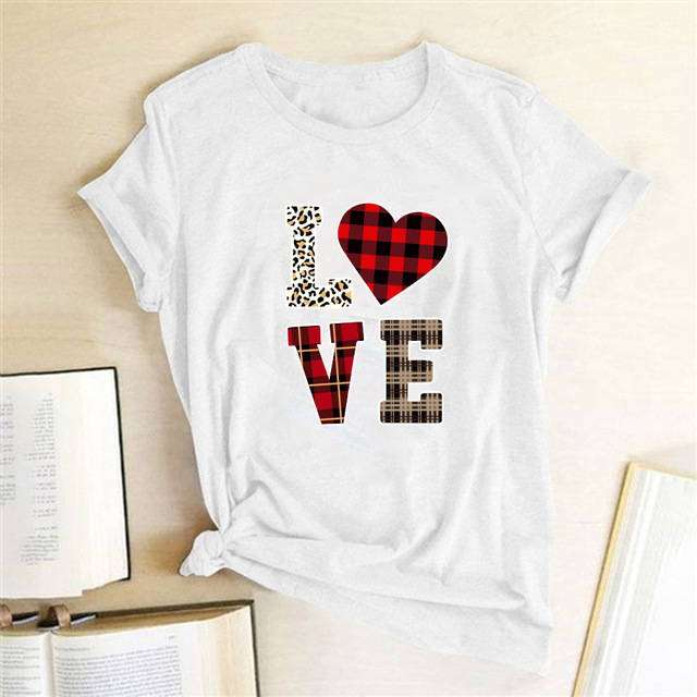 | nameOriginal | 2021 foreign trade Valentine's Day T-shirt short sleeve plaid LOVE men and women couple wear plus size loose short sleeve |