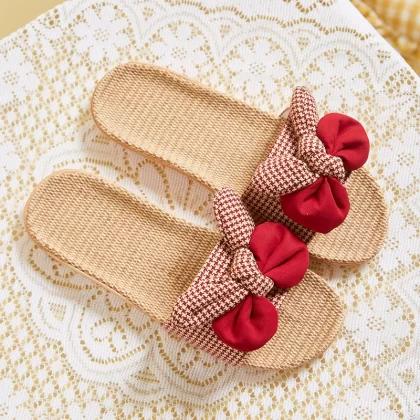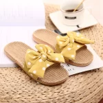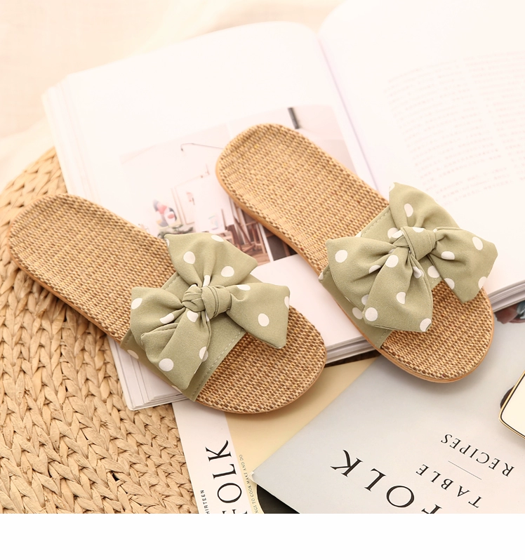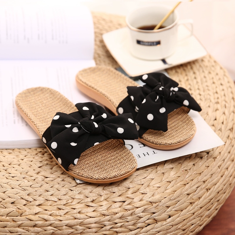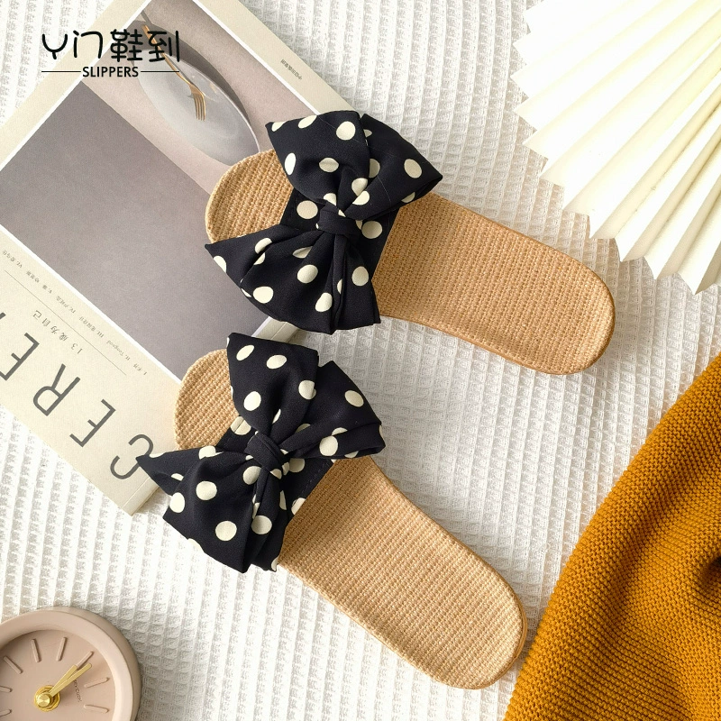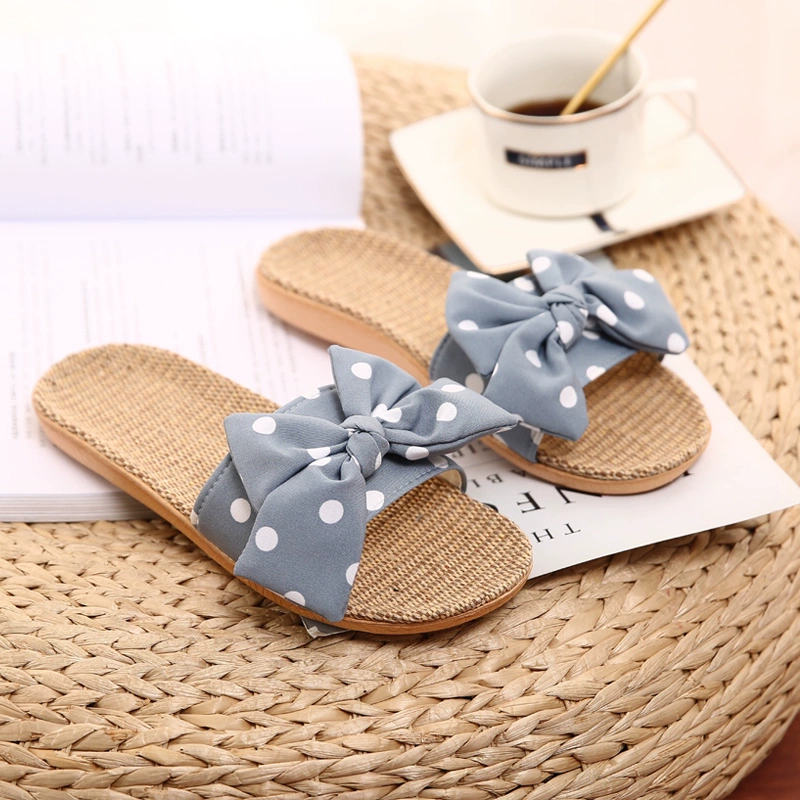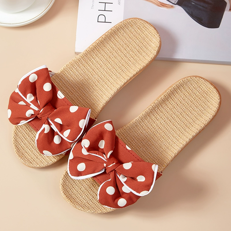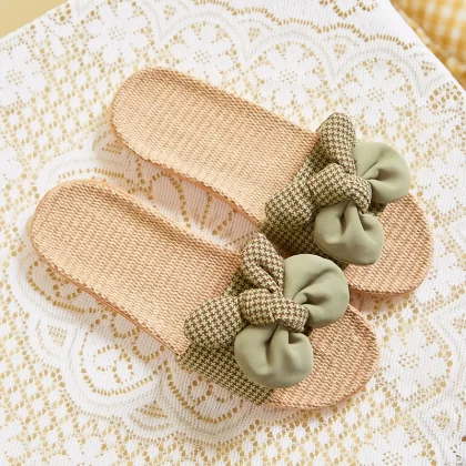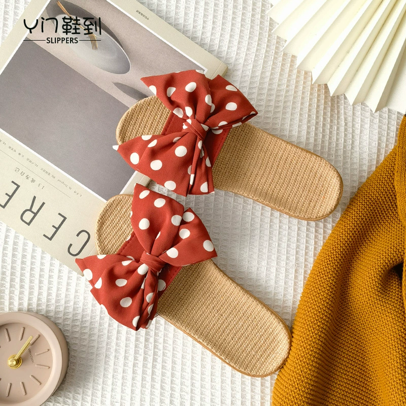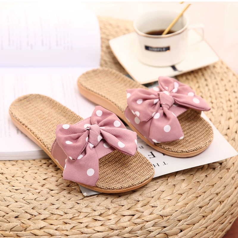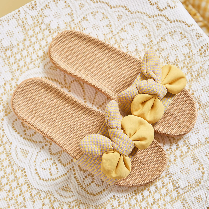 2021 Japanese new style linen, cotton and linen slippers for women, summer bow-knot non-slip office slippers for home use