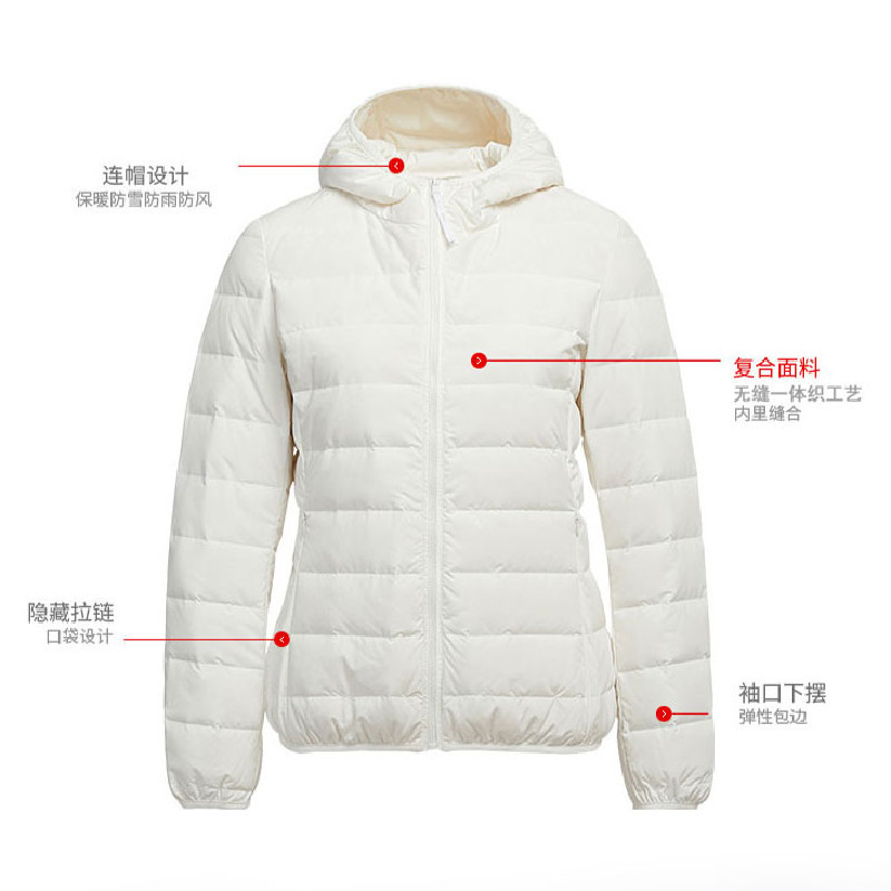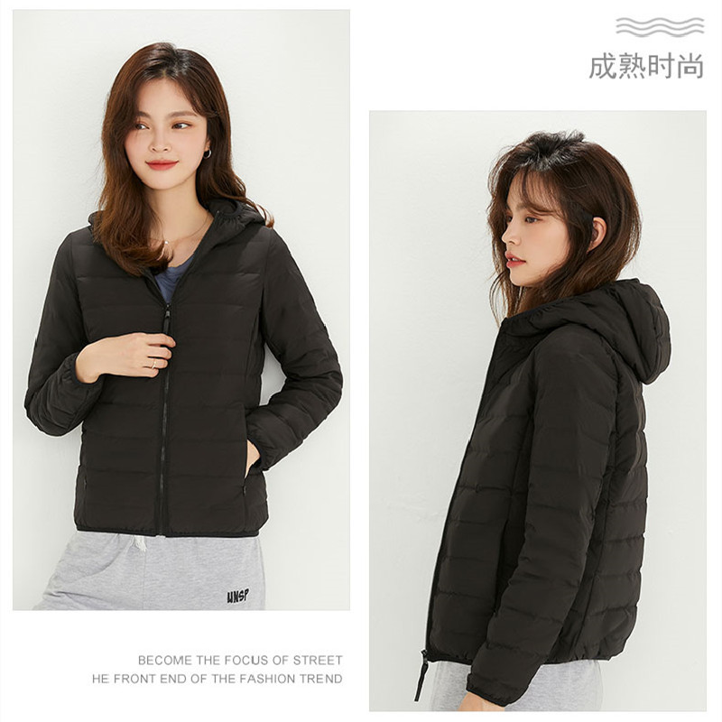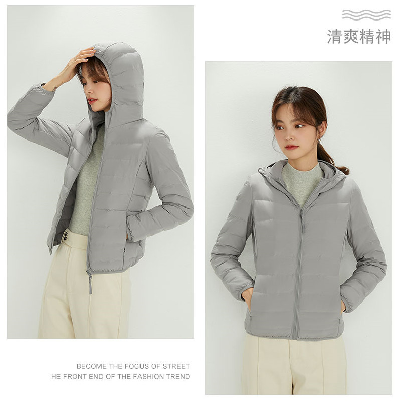 2021 New Arrival Seamless Thin Down Jacket Women’s Lightweight Short Autumn and Winter Lightweight Hooded Outdoor Sports Large Size Jacket