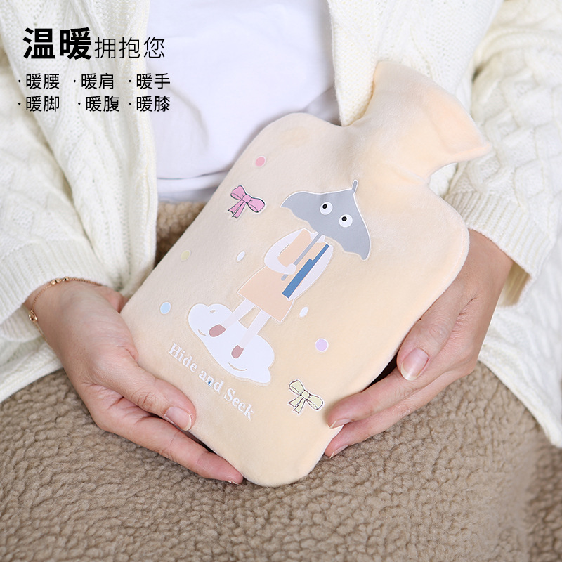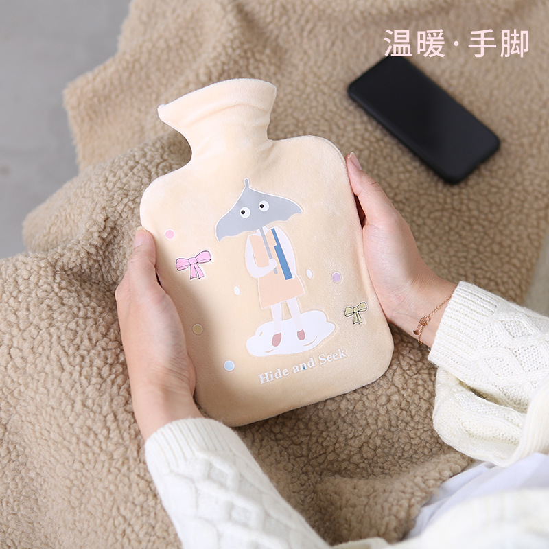 2021 new cartoon water injection hot water bag girl student cartoon plush coat cute hand treasure gift customized printing