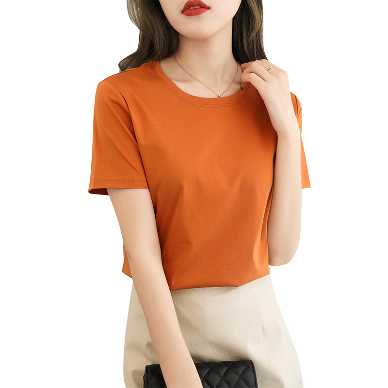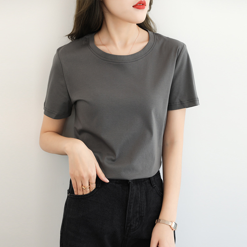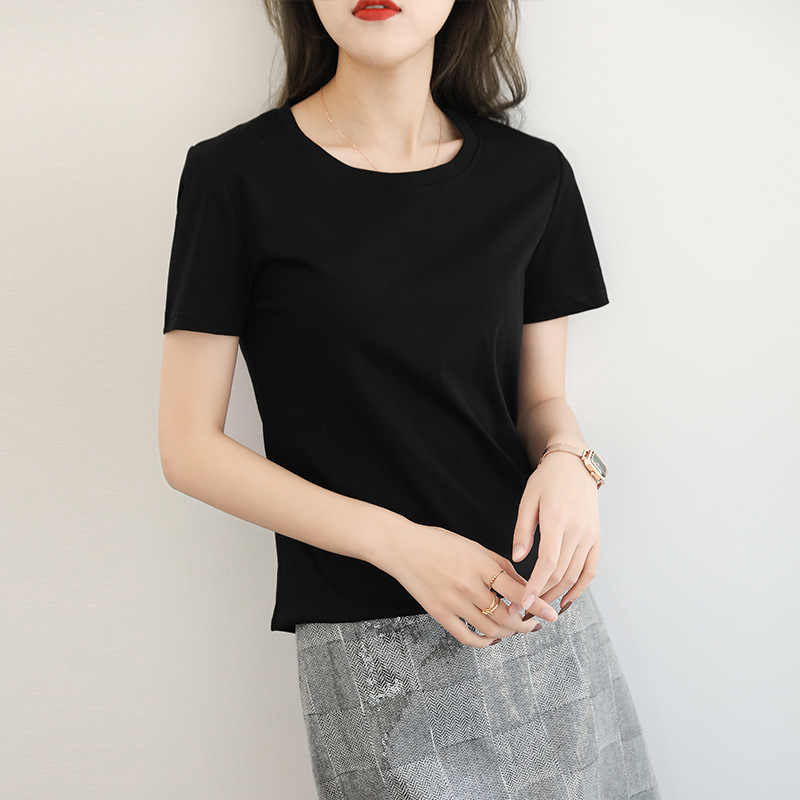 2021 New Cotton Short-sleeved T-shirt Women's Summer Women's Clothing Loose White Round Neck Solid Color Base Top Trendy